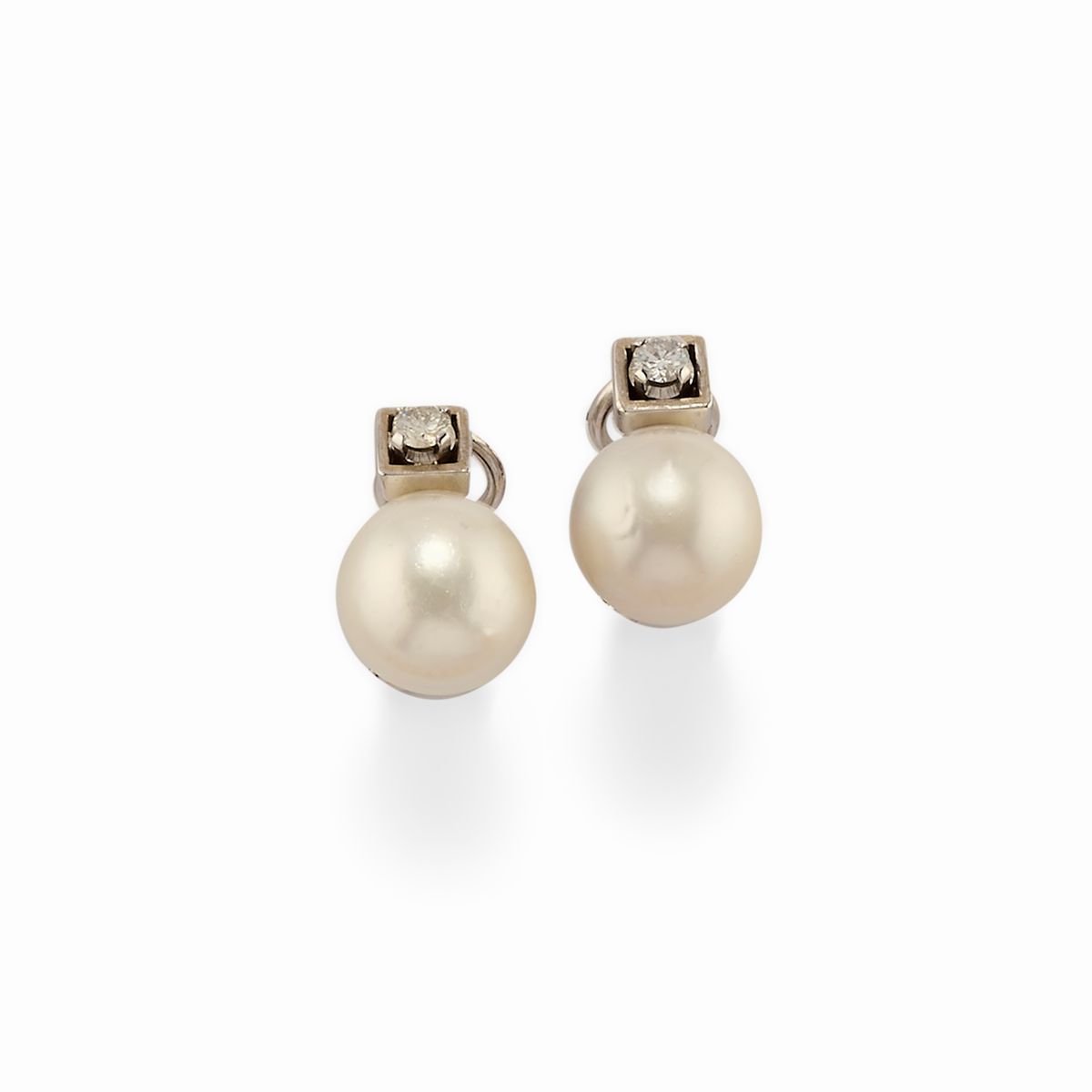 A 18k white gold, cultured pearl and diamond demi parure