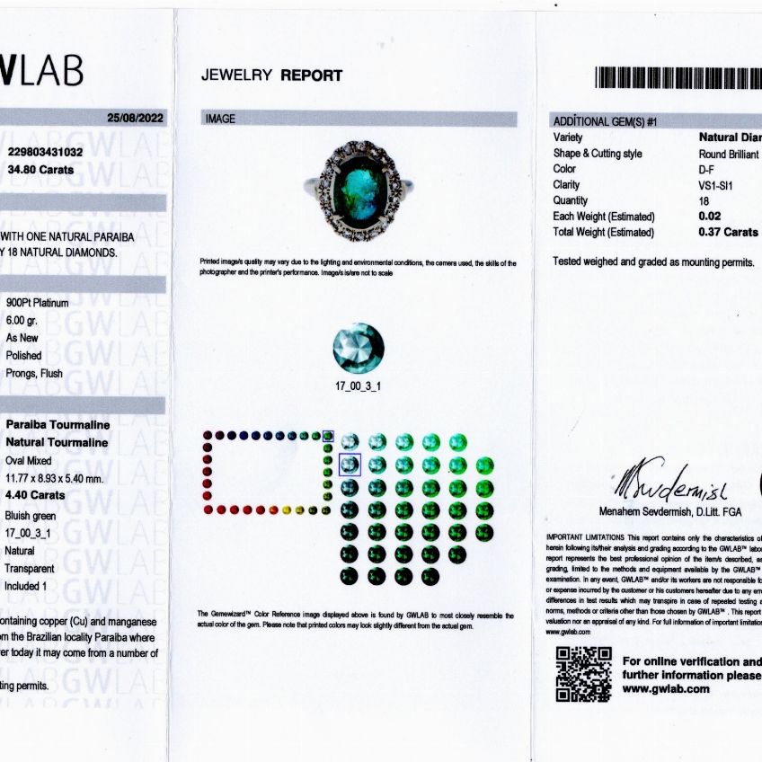 Lo tormalina è accompagnata da certificato gemmologico n. 229803431032 del 25/08/2022, GWLAB.