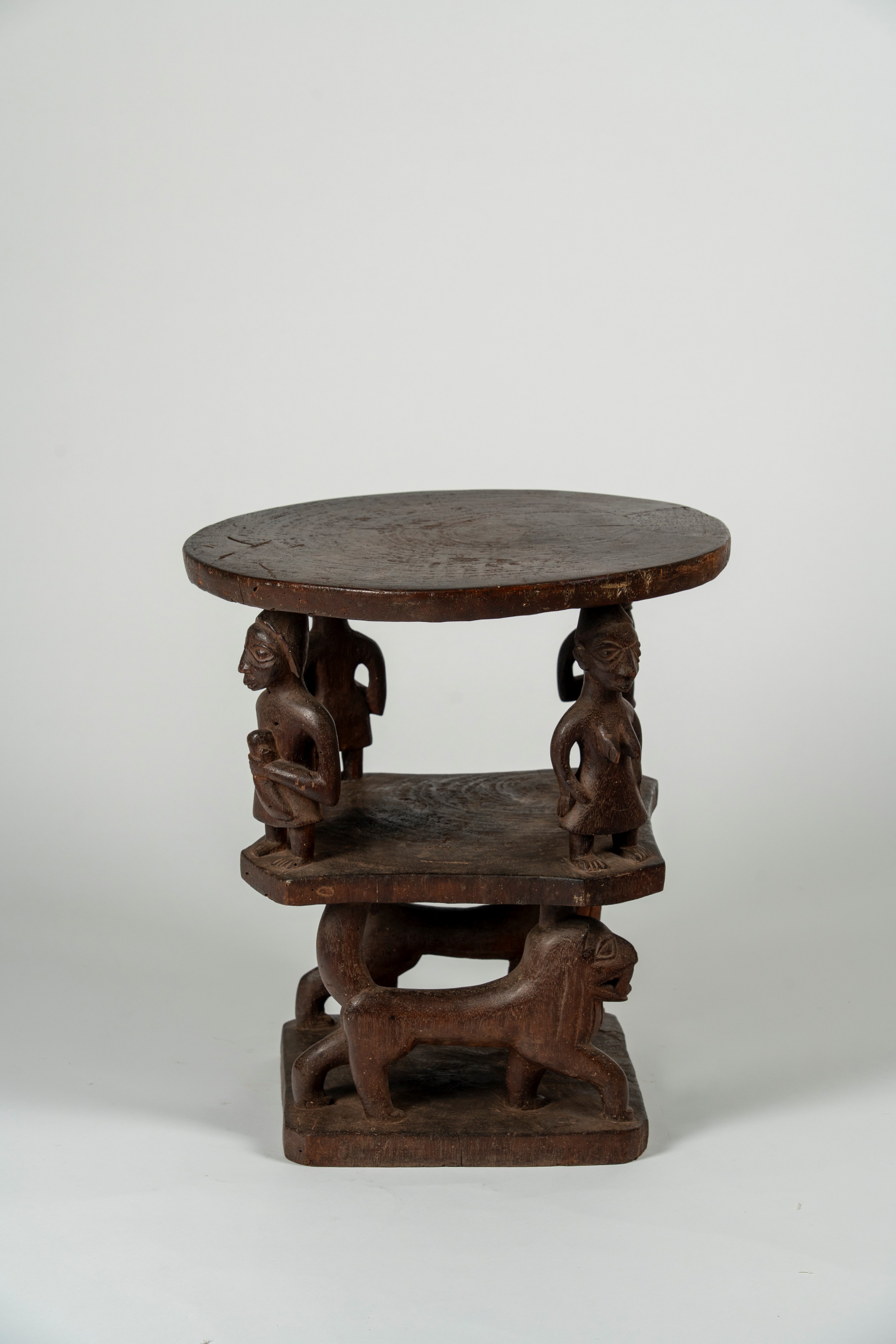 Seat with figures and lions