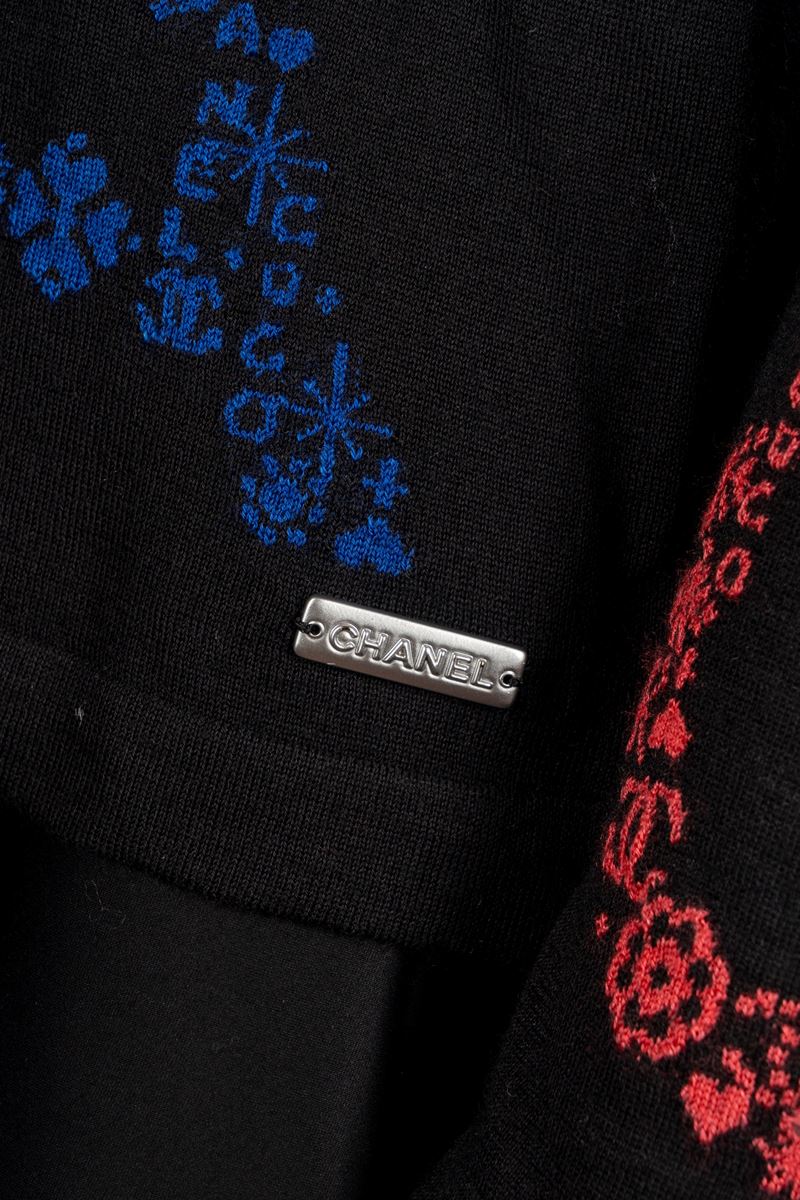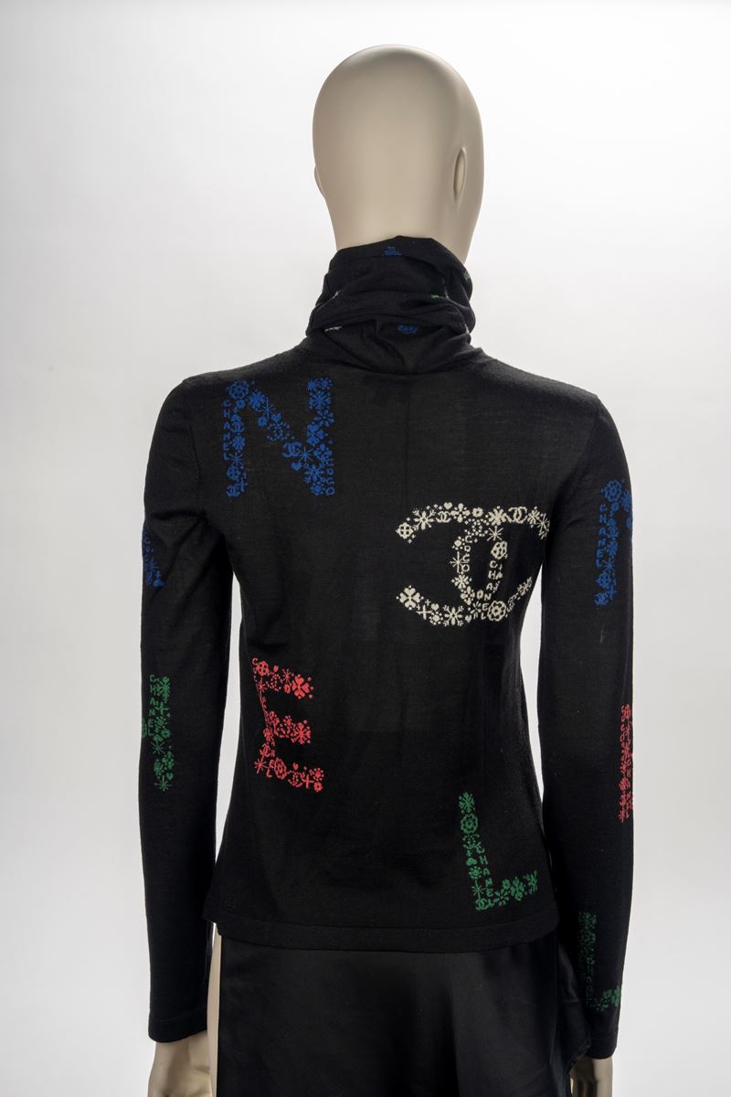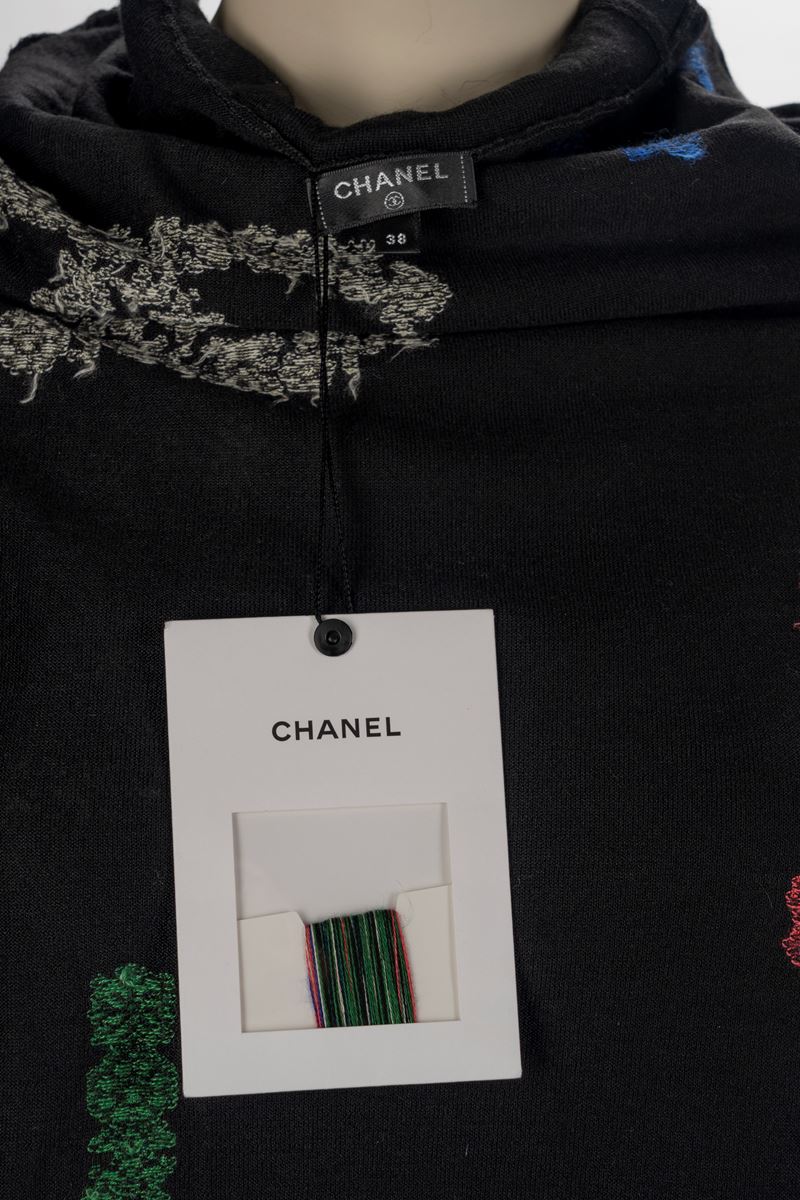 Black cashmere and silk long sleeves pullover, multicolor embroidered, size 38, with dustbag