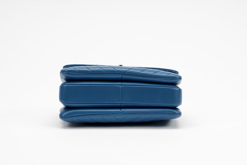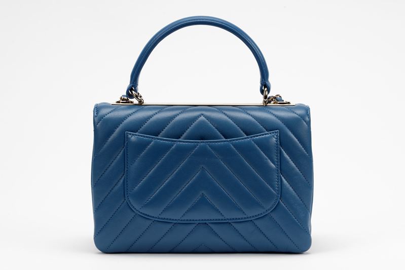 Blue chevron leather Trendy bag, detachable chain shoulder strap, metal details, cm 24 (very slight signs of use)Starting bid
