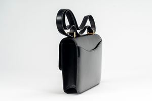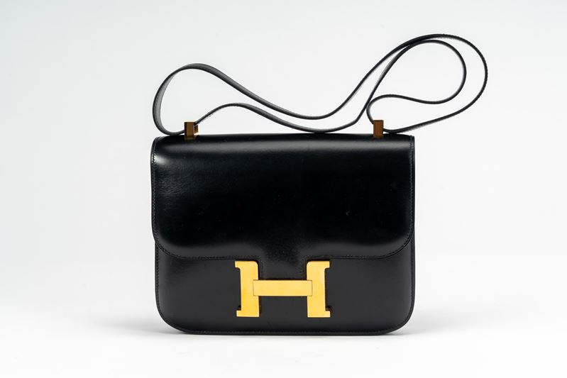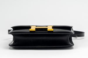 Black box leather Constance bag, metal gilt details, cm 23, with box (slight signs of use)