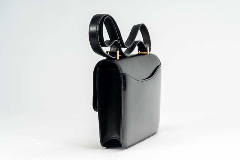 Black box leather Constance bag, metal gilt details, cm 23, with box (slight signs of use)Starting bid