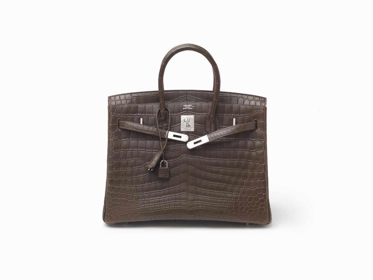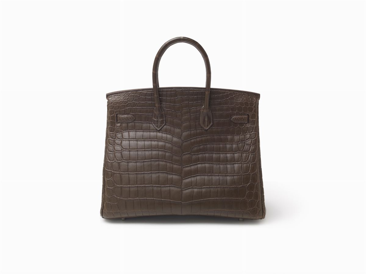 Coffee Niloticus crocodile 35 cm Birkin Bag with palladium hardware, dustbag and box (never used), 2011Estimate