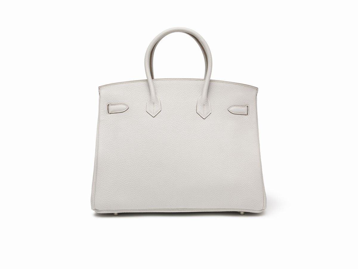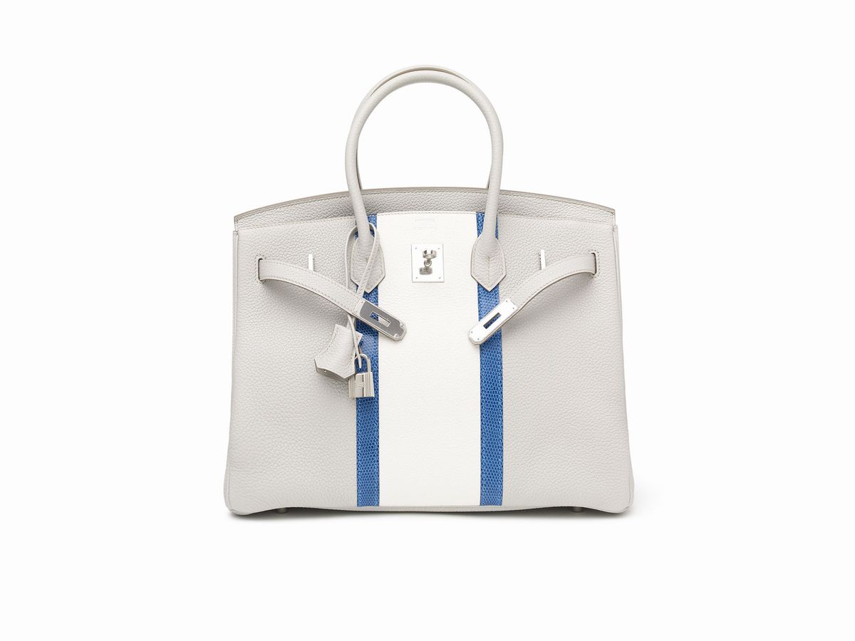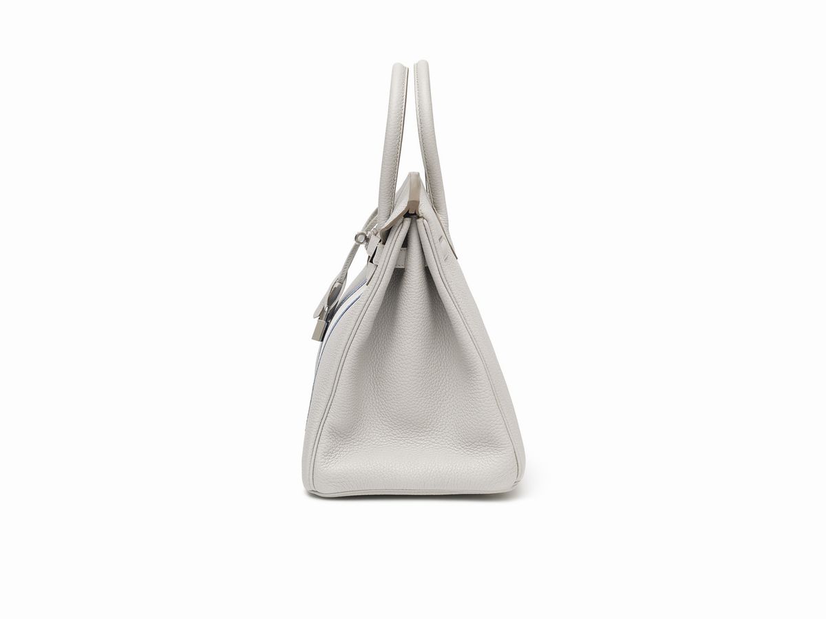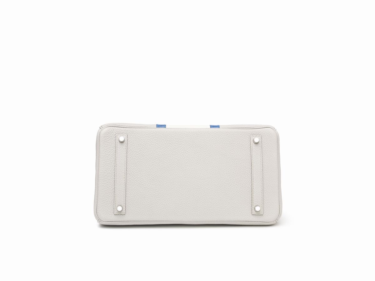 Gris perle, white taurillon clemence leather and blue Mykonos lizard 35 cm Birkin Club bag with palladium hardware, dustbag and box (never used), Limited Edition 2012