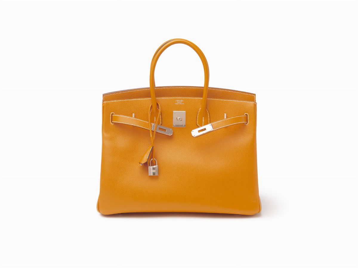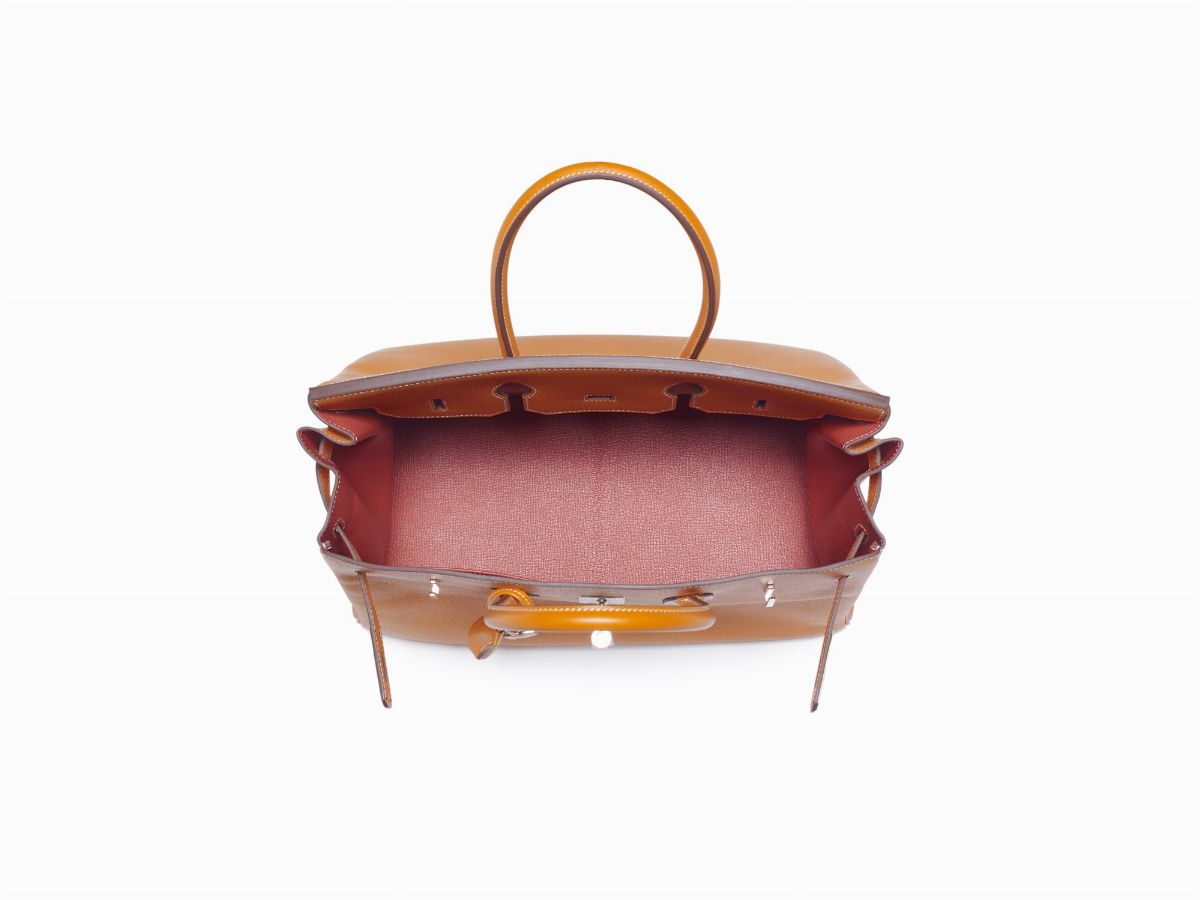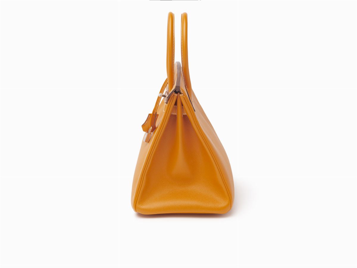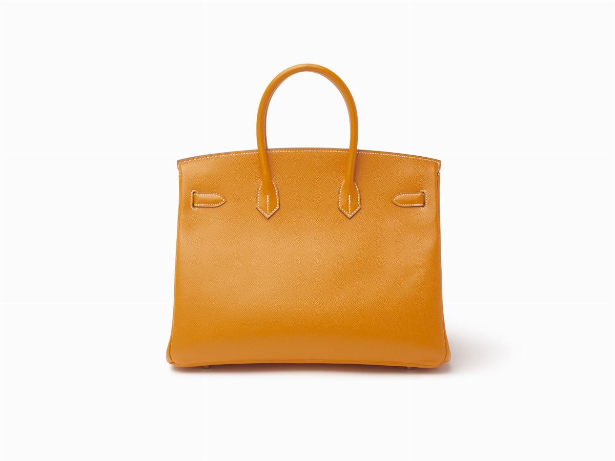 Jaune d'or epsom leather 35 cm Candy Birkin bag (interior brown color) with gold metal hardware, dustbag and box (never used), 2012Estimate
