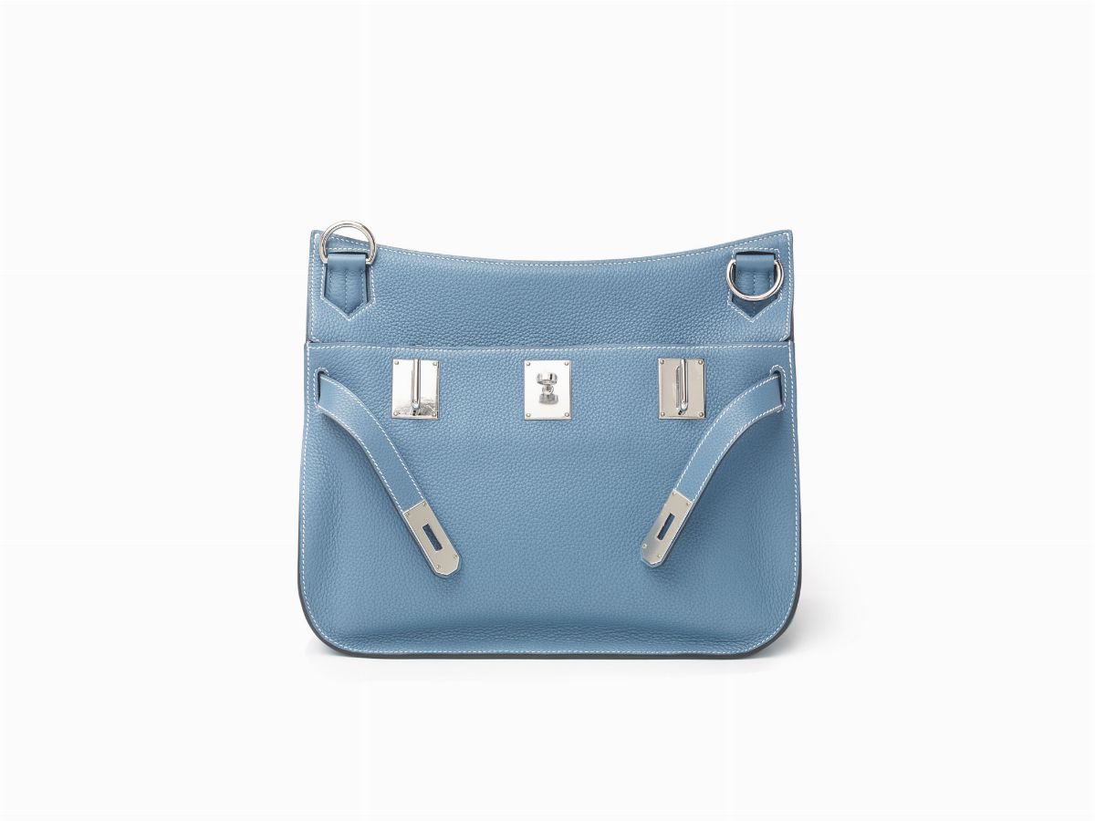 Blue jean taurillon clemence leather 34 cm Jypsiere shoulder bag with palladium hardware, dustbag and box (never used), 2012Estimate