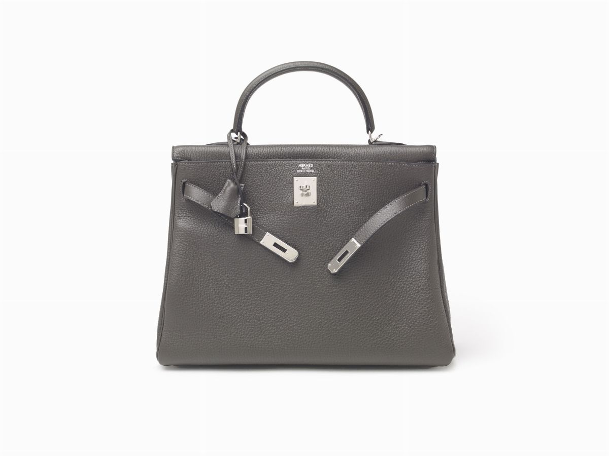 Graphite taurillonclemence leather 35 cm Kelly Retourne bag with palladium hardware, dustbag and box (never used), 2010Estimate
