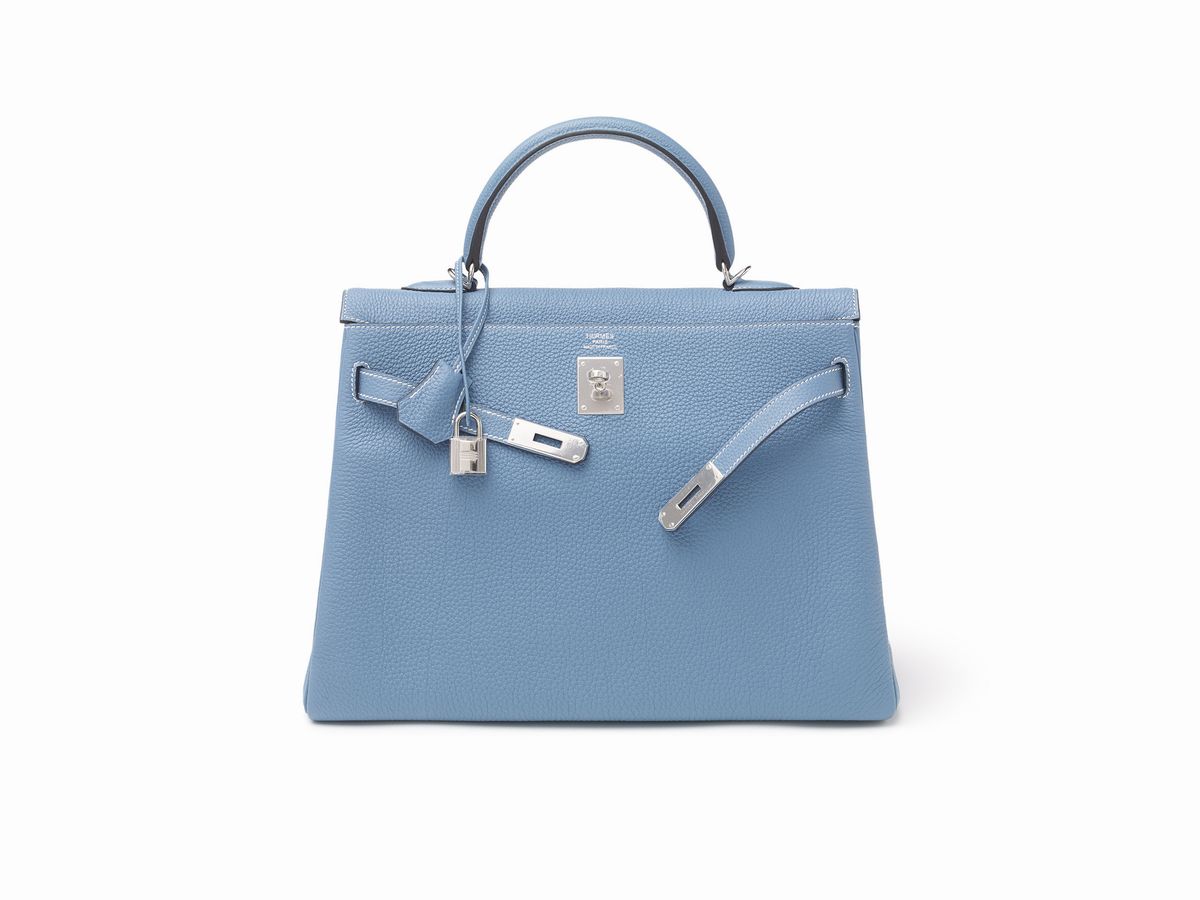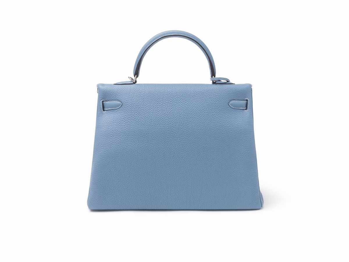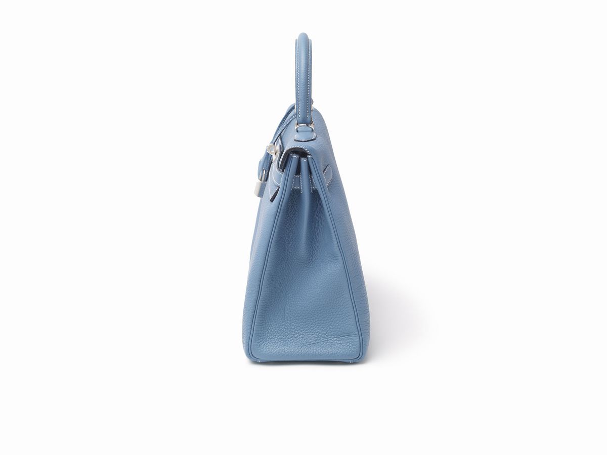 Blue jean togo leather 35 cm Kelly Retourne bag with palladium hardware, dustbag and box (never used), 2012Estimate