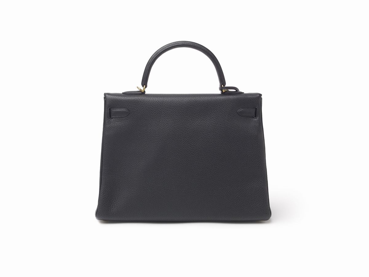 Black togo leather 35 cm Kelly Retourne bag with gold metal hardware, dustbag and box(never used), 2012Estimate