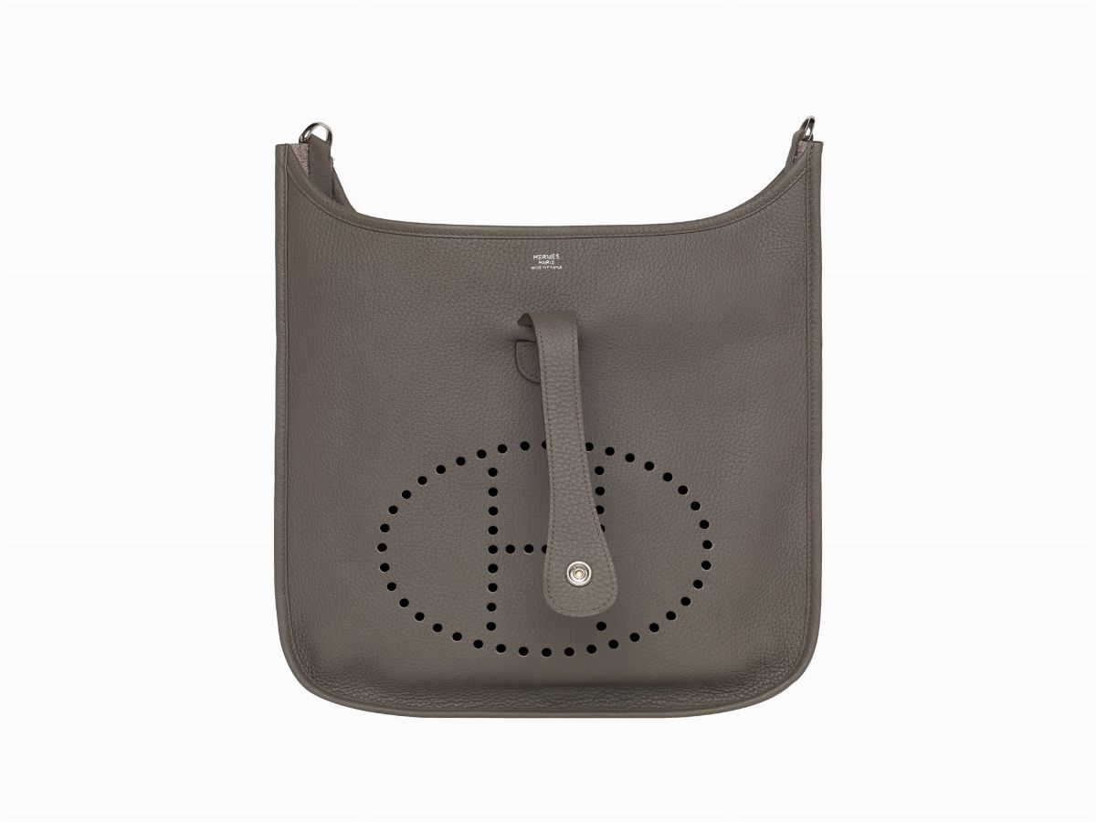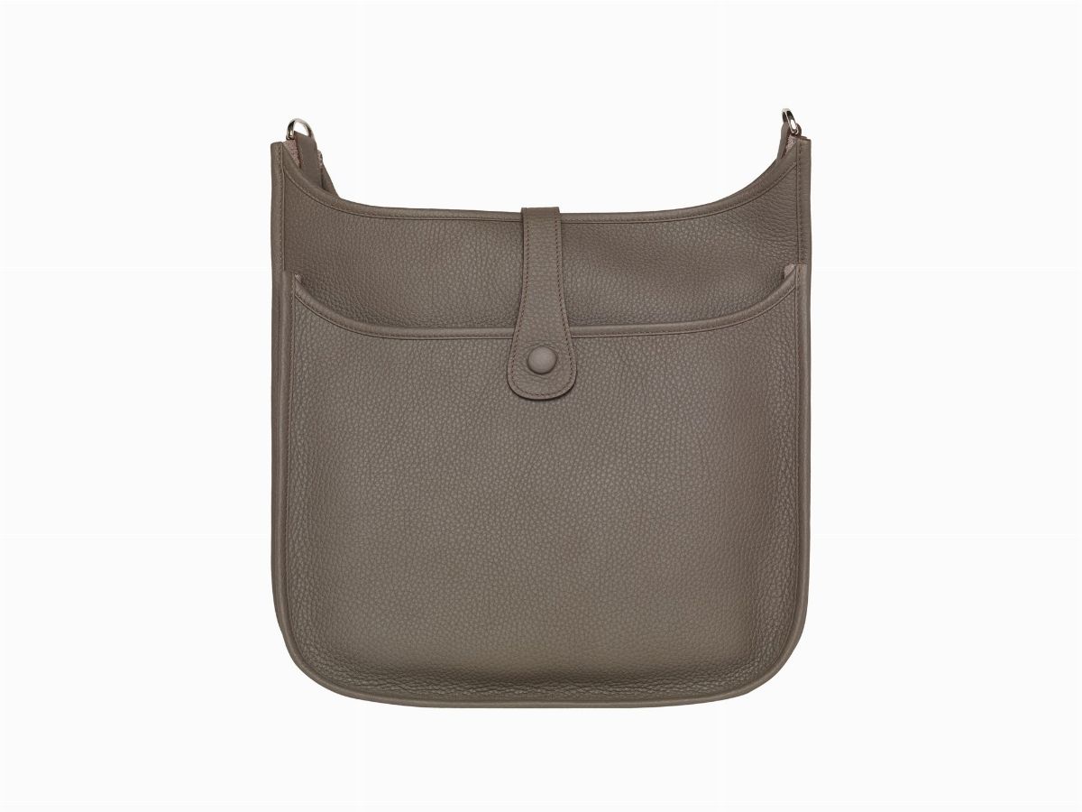 Grey taurillon clemence leather Evelyne Poche GM shoulder bag with palladium hardware, dustbag and box (never used)Estimate