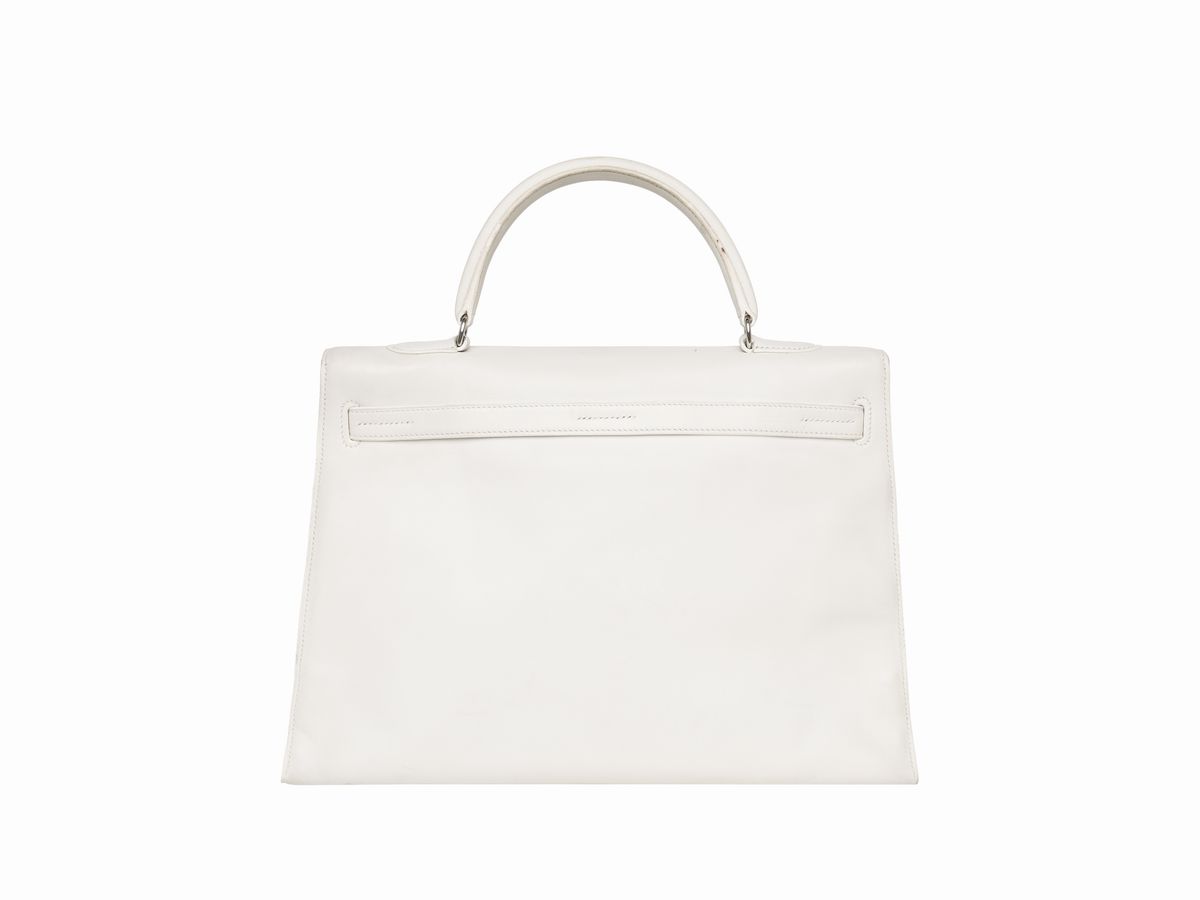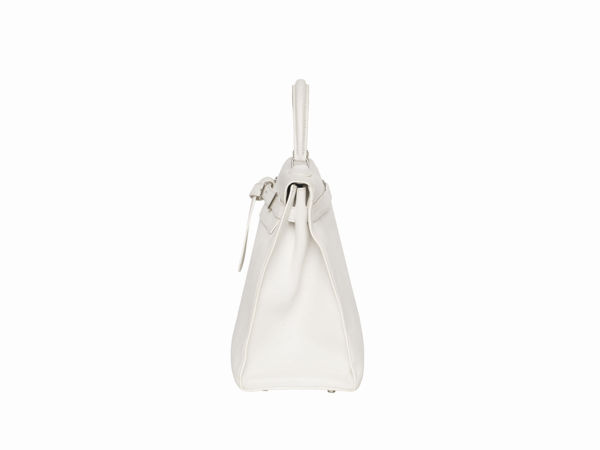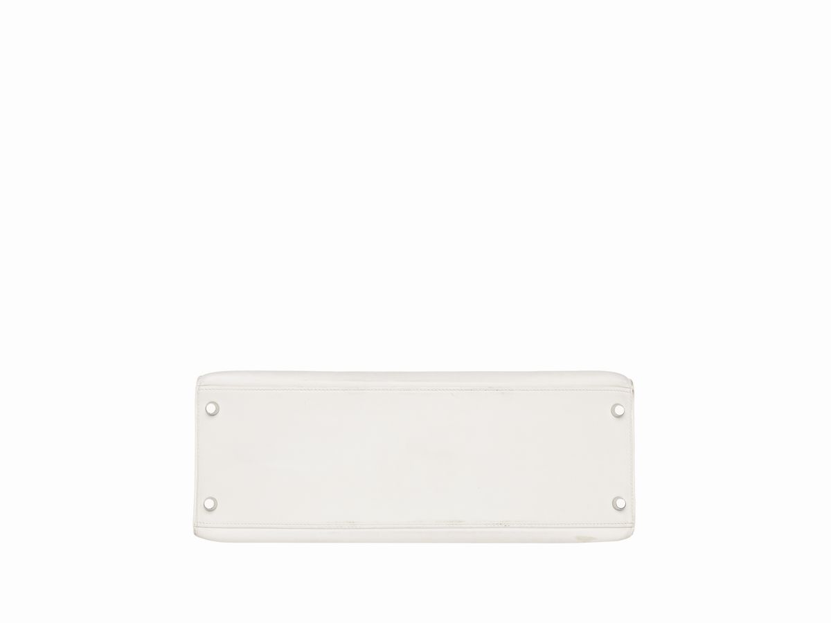 White leather cm 35 Kelly Flat bag with palladium hardware (defects)