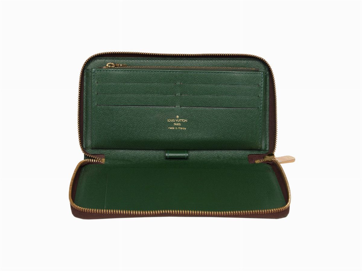 Monogram groom wallet with dustbag and box, cm 21 x 12, (defects)
