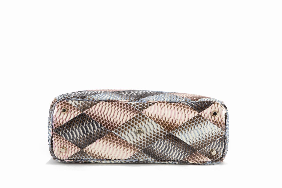 Diorissimo Tote patchwork python leather bag, with double handles, detachable strap and pouch, cm 32, with dustbag and box (slight defects).