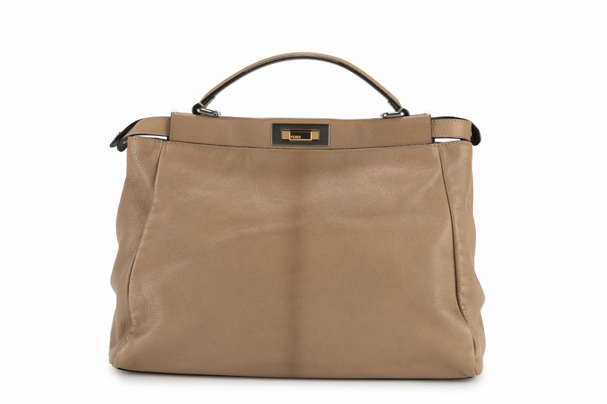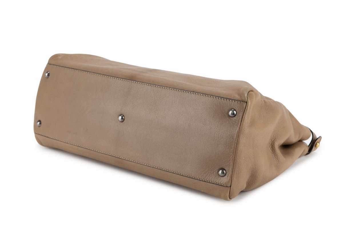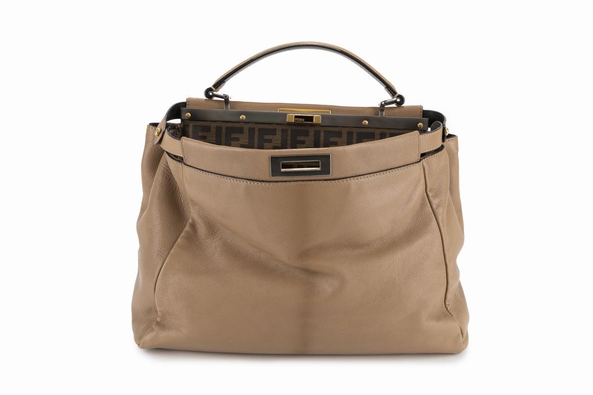 Tobacco color leather Peekaboo bag, removable shoulder strap, bicolor metal details with logo, cm 40 with dustbag (slight defects).Estimate