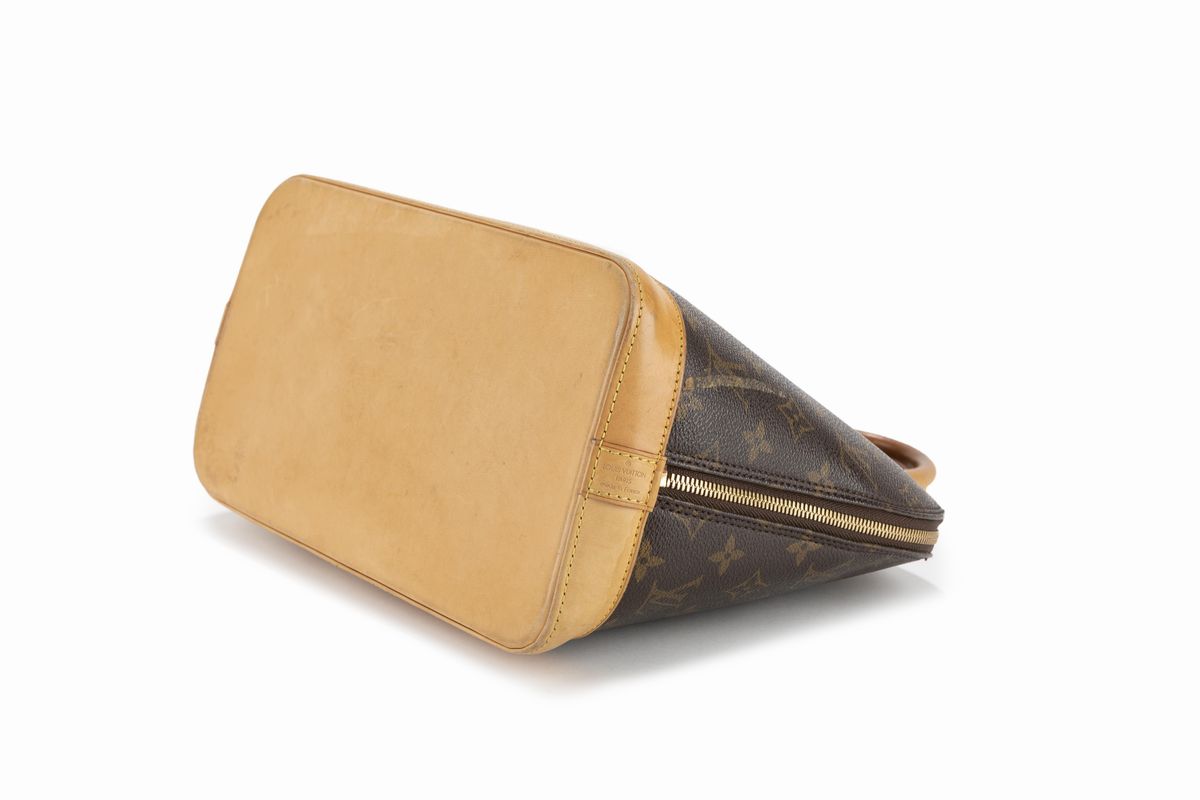 Monogram canvas Alma bag with double handles, cm 30, with dustbag (defects).Estimate