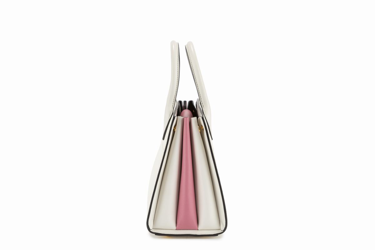 Double handle cream and pink leather bag with shoulder strap and dustbag, cm 22 (slight defects).Estimate