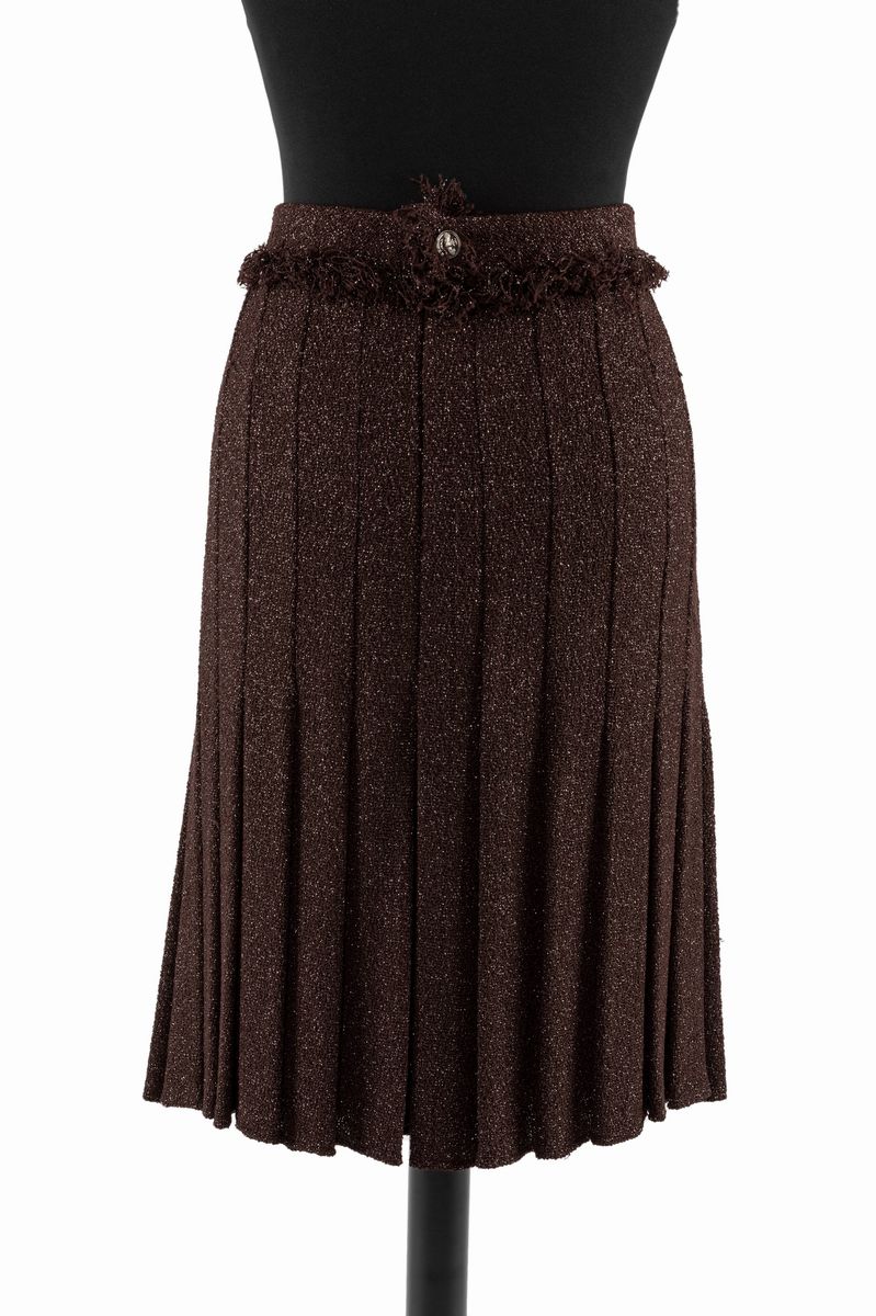 Mixed fabric dark burgundy color skirt, logoed metal gilt details, silk lining, size 44 (slight defects).