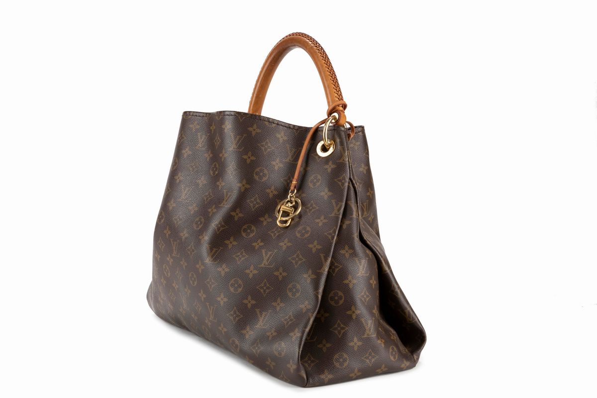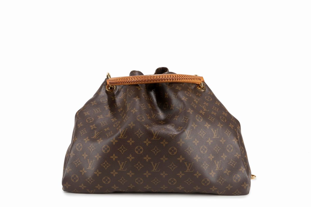 Monogram canvas Artsy bag, gilt tone details, braided leather handle, cm 50 (very slight defects).