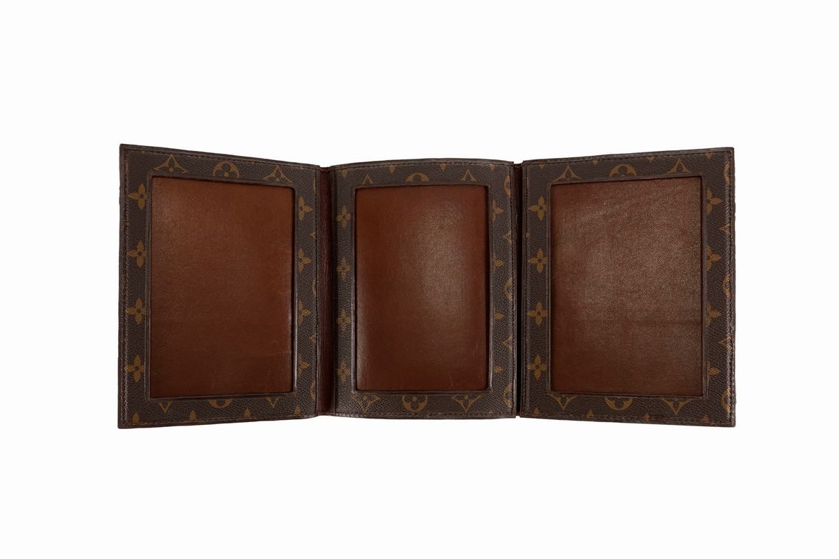 Monogram leather photo holder, cm 47 x 20, with dustbag (defects).