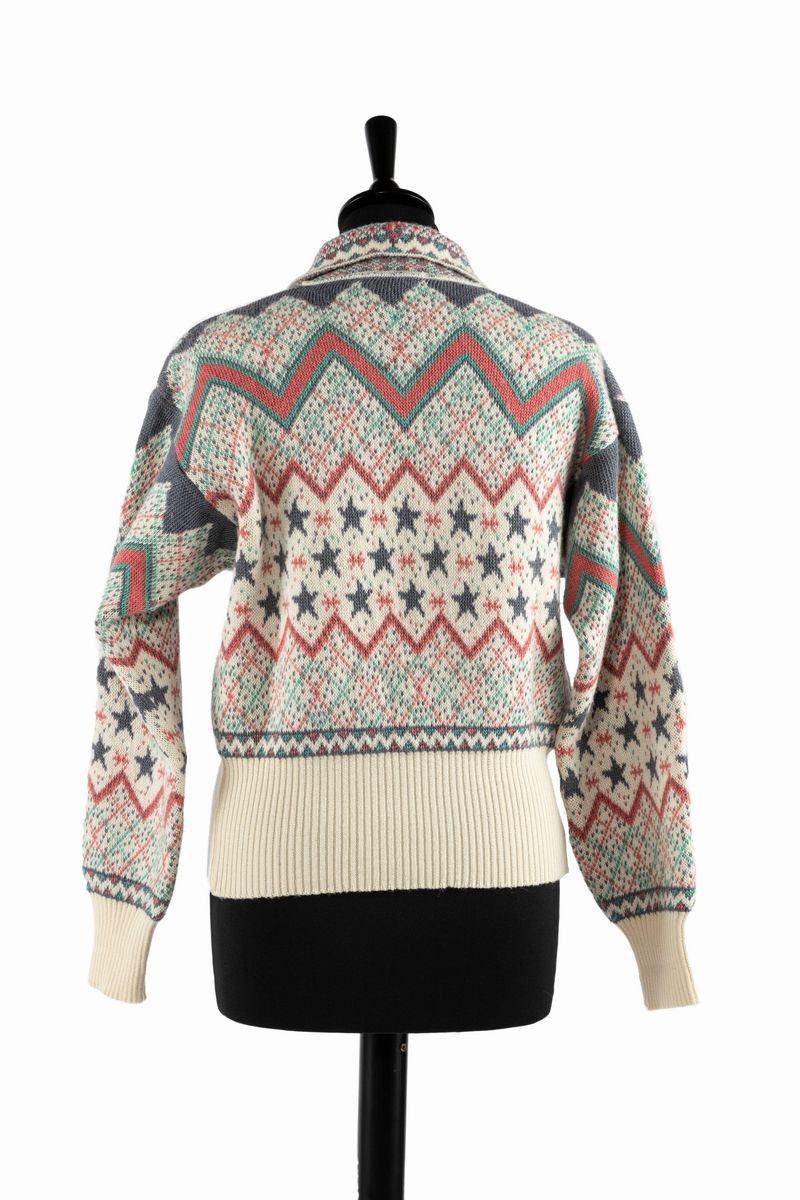 Lot of a wool zig-zag fantasy long sleeves top and a large stole (cm 75 x 230 with fringes) in pendant, size 40.Starting bid