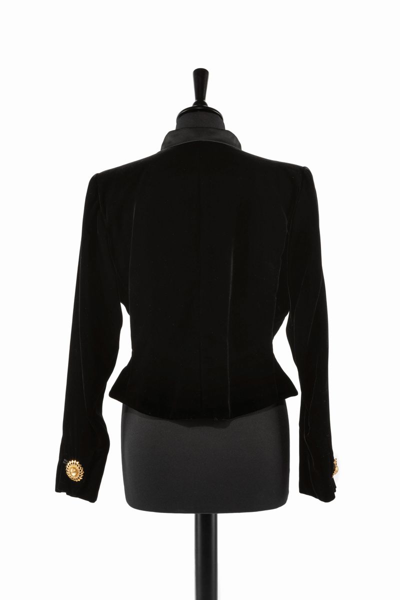 Black silk velvet jacket, metal gilt and rhinestones details, size 40 (slight defects).