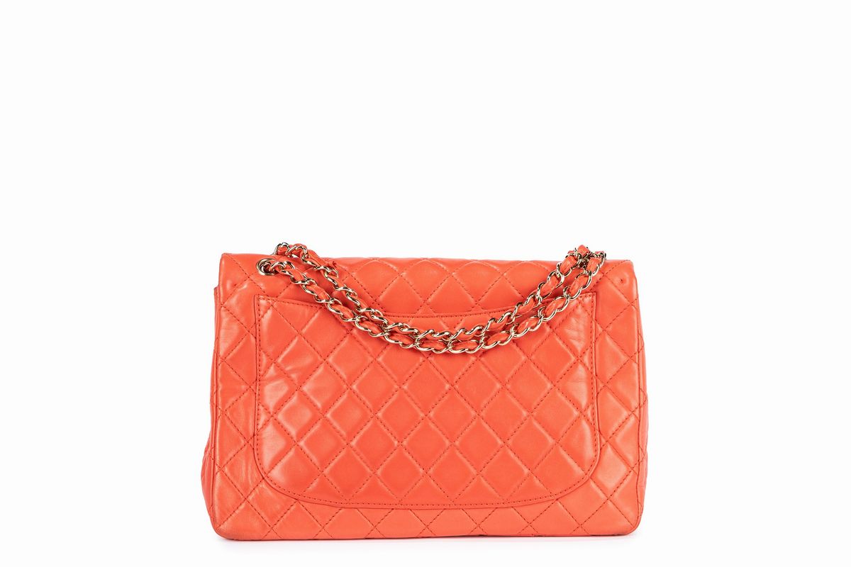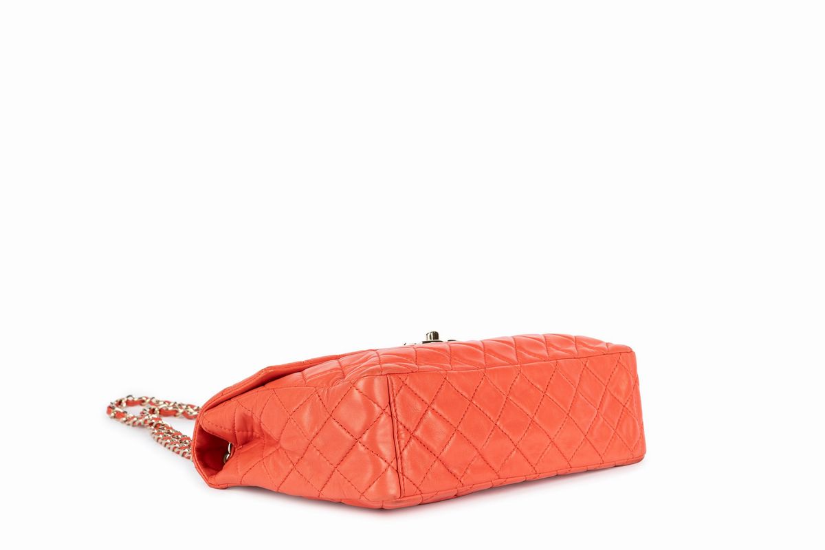 Coral quilted leather Jumbo timeless shoulder bag, metal gilt details, cm 33, with dustbag.