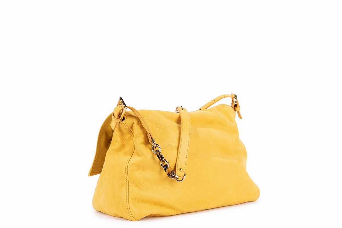 Yellow iridescent leather large flap Mama Forever shoulder bag, 34 cm, with dustbag (slight defects).Starting bid