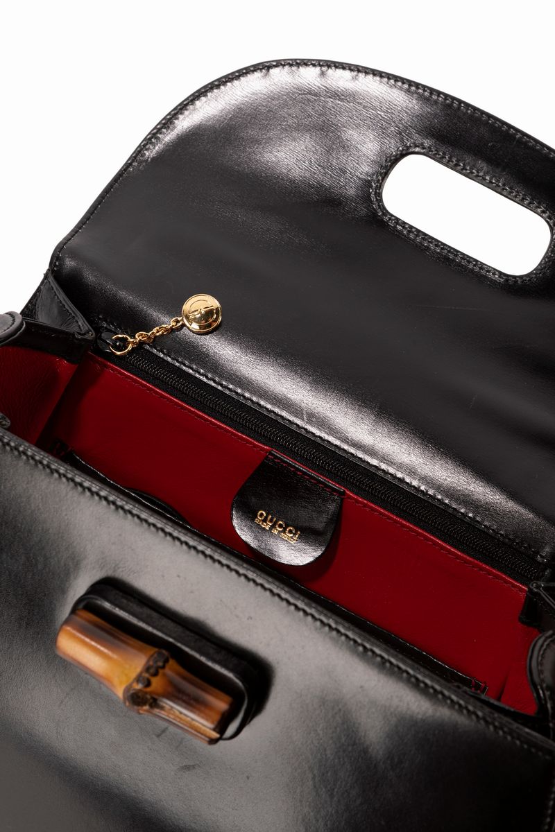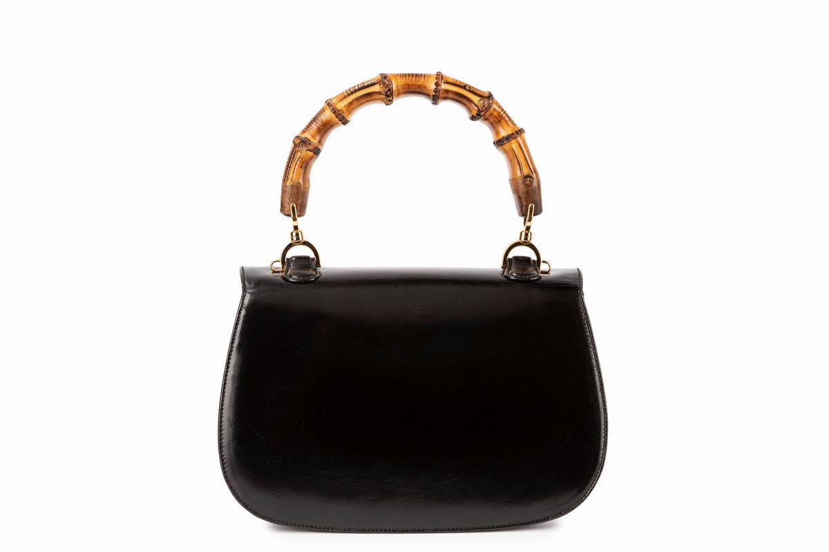 Black leather Bamboo bag, metal gilt details, detachable shoulder strap, cm 27 (slight defects).Starting bid