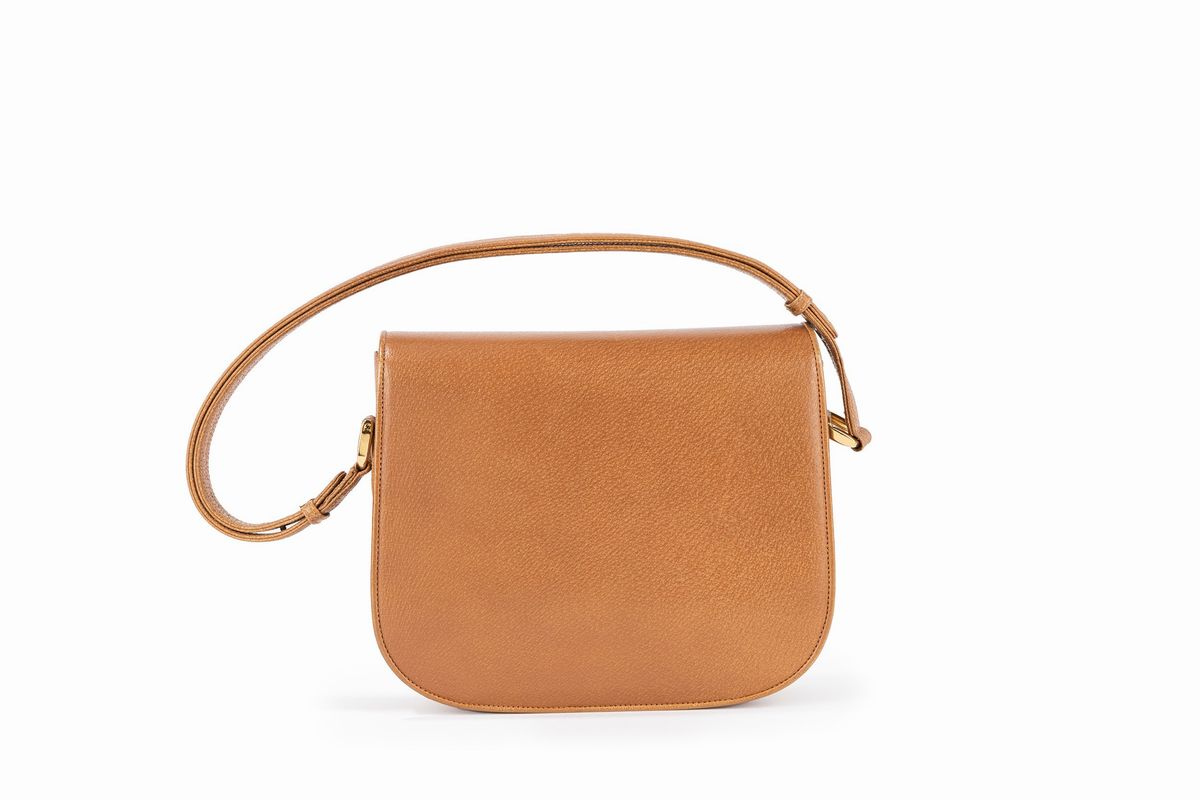Light brown pigskin leather shoulder strap bag, bicolor metal details, cm 23 (slight defects).Starting bid