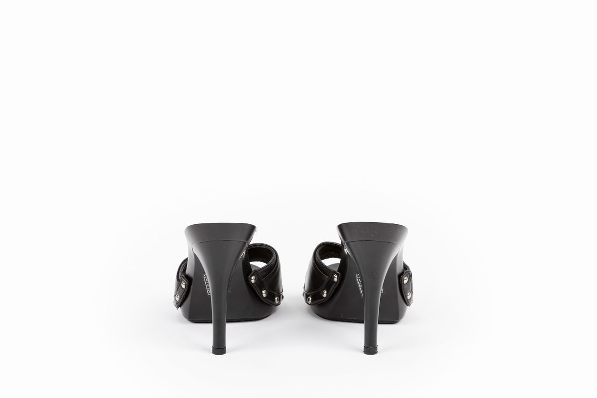 A pair of black clogs with nappa leather, heel cm 11, size 39 1/2, with box (new and never worn)