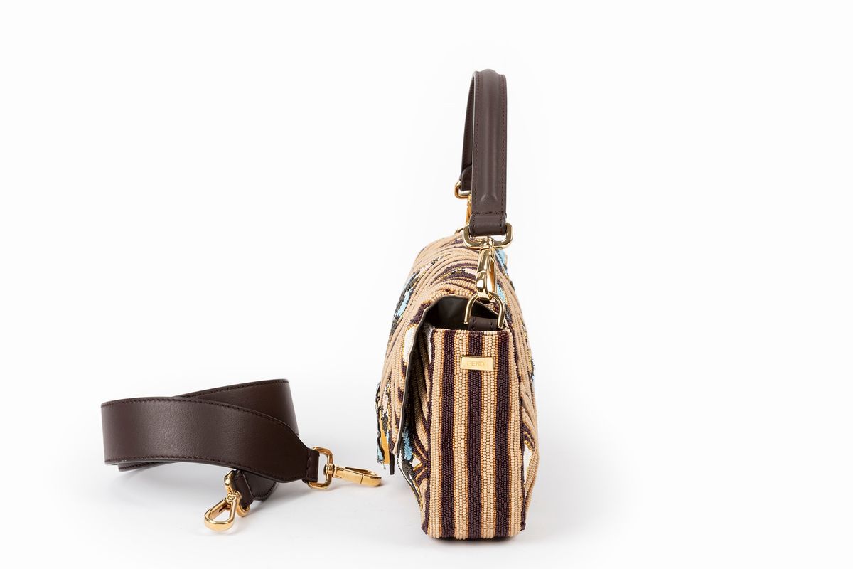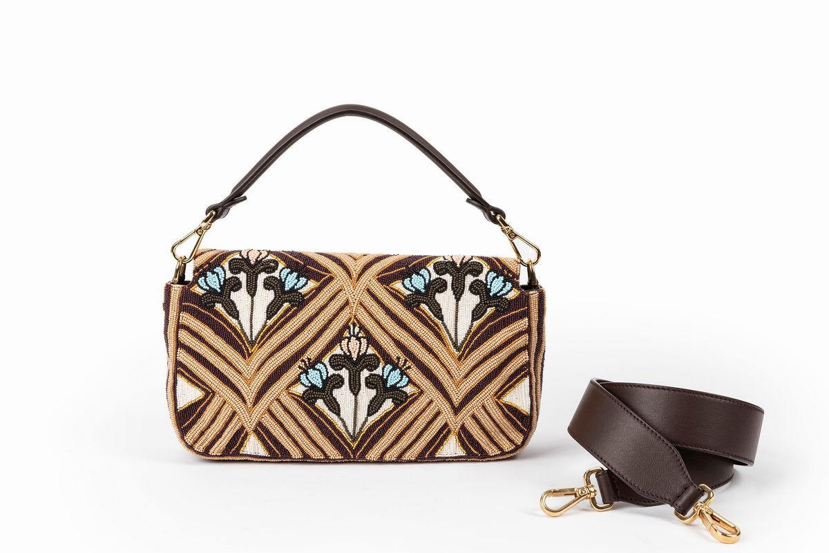 Double leather shoulder strap baguette bag, metal gilt and enamel details, cm 27, with dustbag and boxStarting bid