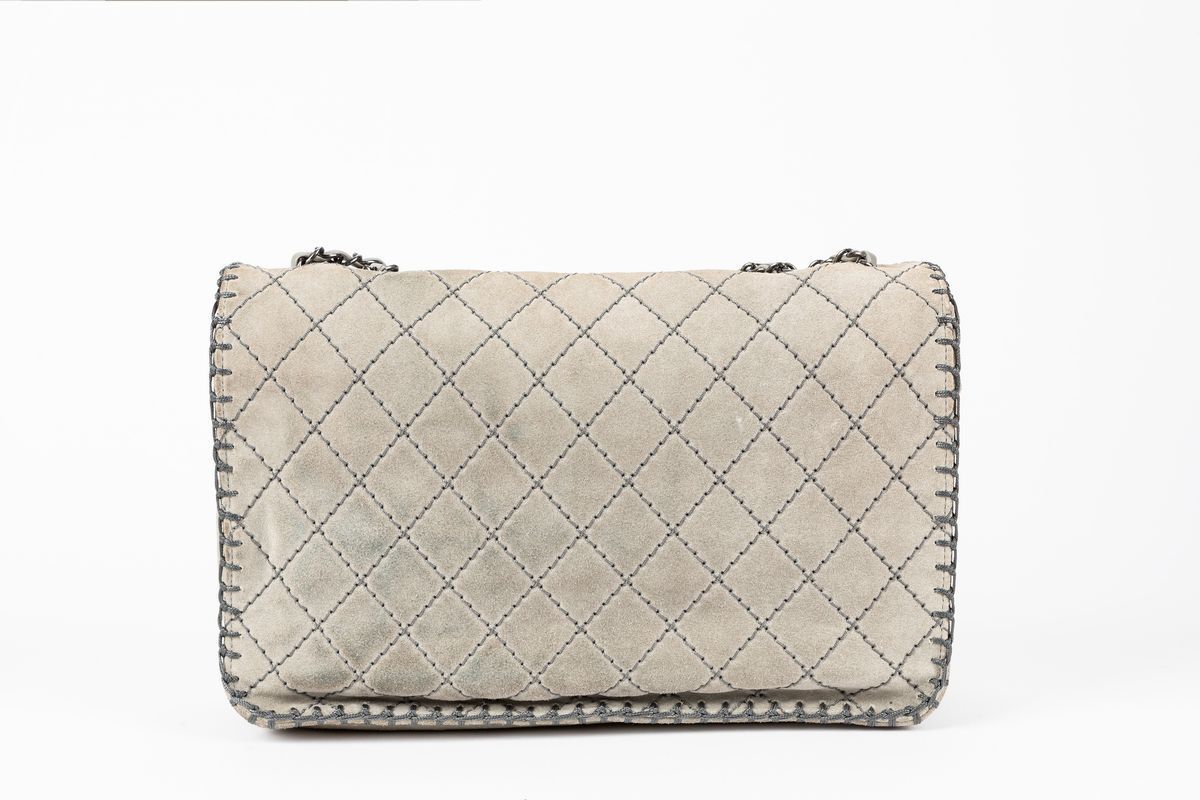 Grey quilted suede shoulder strap bag, burnished metal details, cm 32 (defects)Starting bid