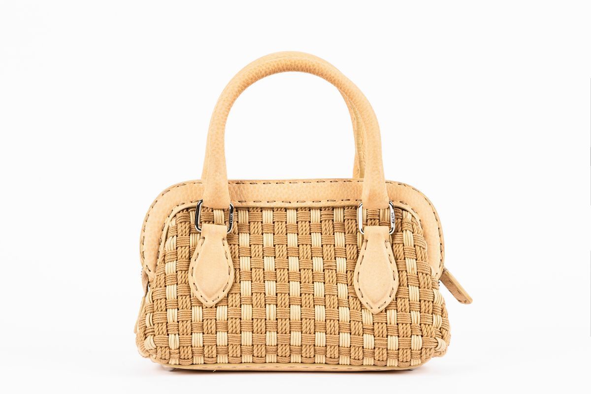 Brided rope and sand color leather double handles bag, metal gilt details, cm 22 (slight defects)Starting bid