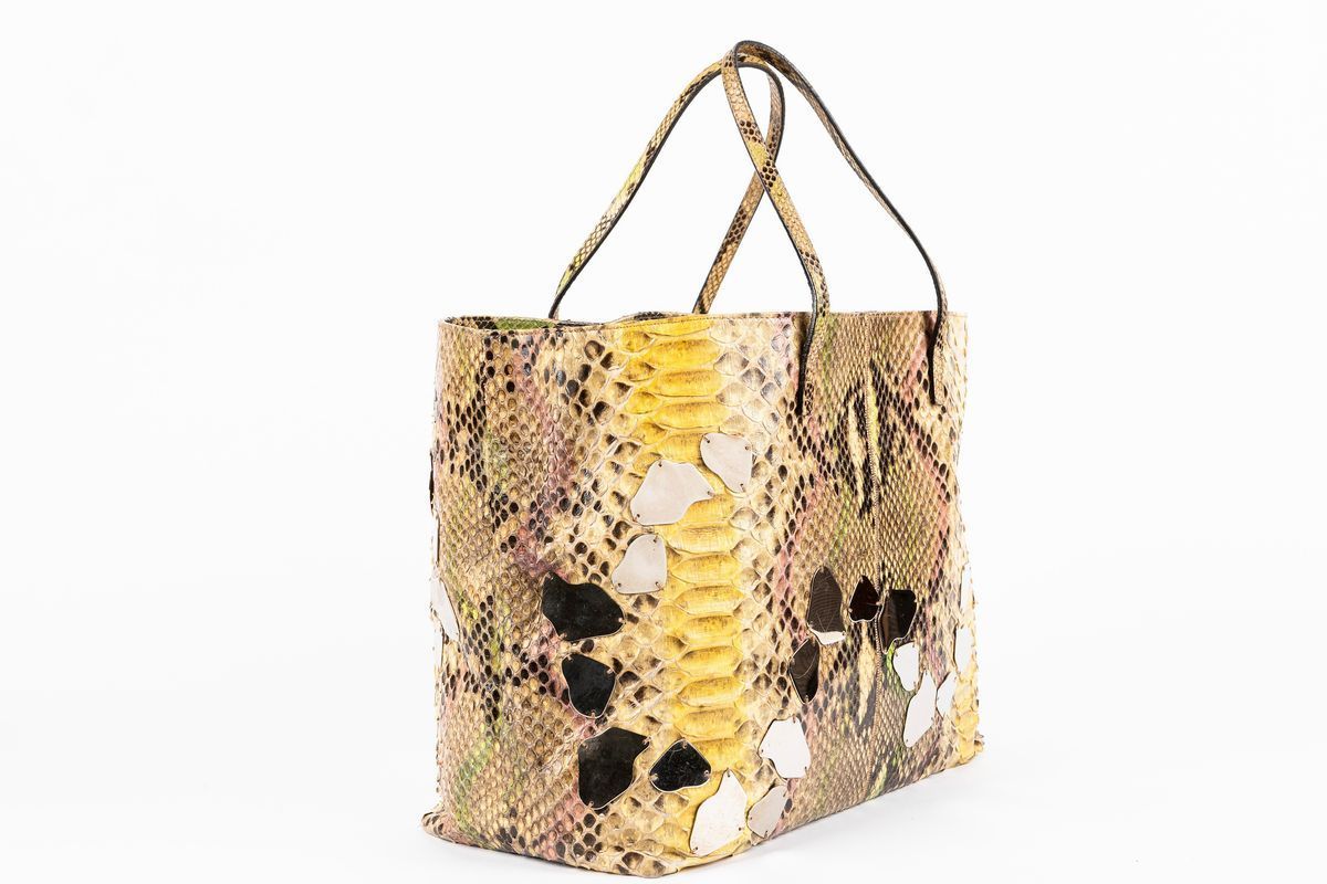 Mirrored snakeskin double handles bag, cm 35, with dustbag (defects).