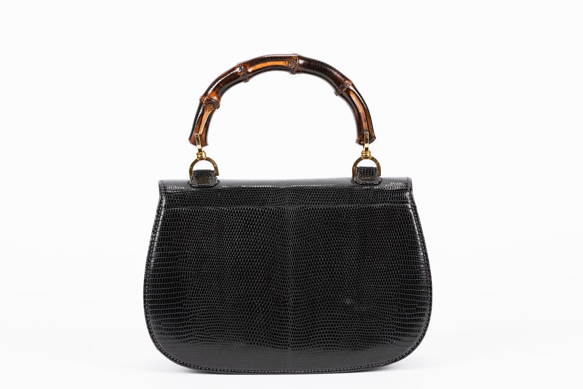 Dark blue lizard leather bamboo handbag, cm 27, Pre Cites convention (slight defects)