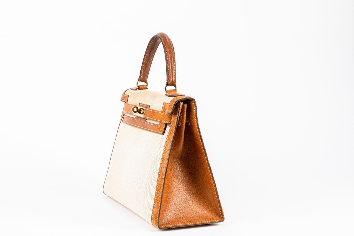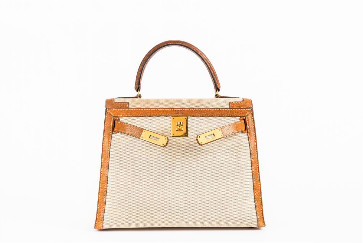 cm 28 Canvas and Leather Kelly Sellier Bag, 1992