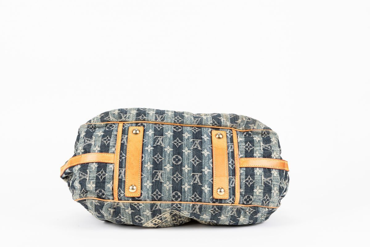 Blue monogram denim canvas bag, leather double handles and trims, metal gilt details, detachable shoulder strap, cm 40, with dustbag (defects)Starting bid
