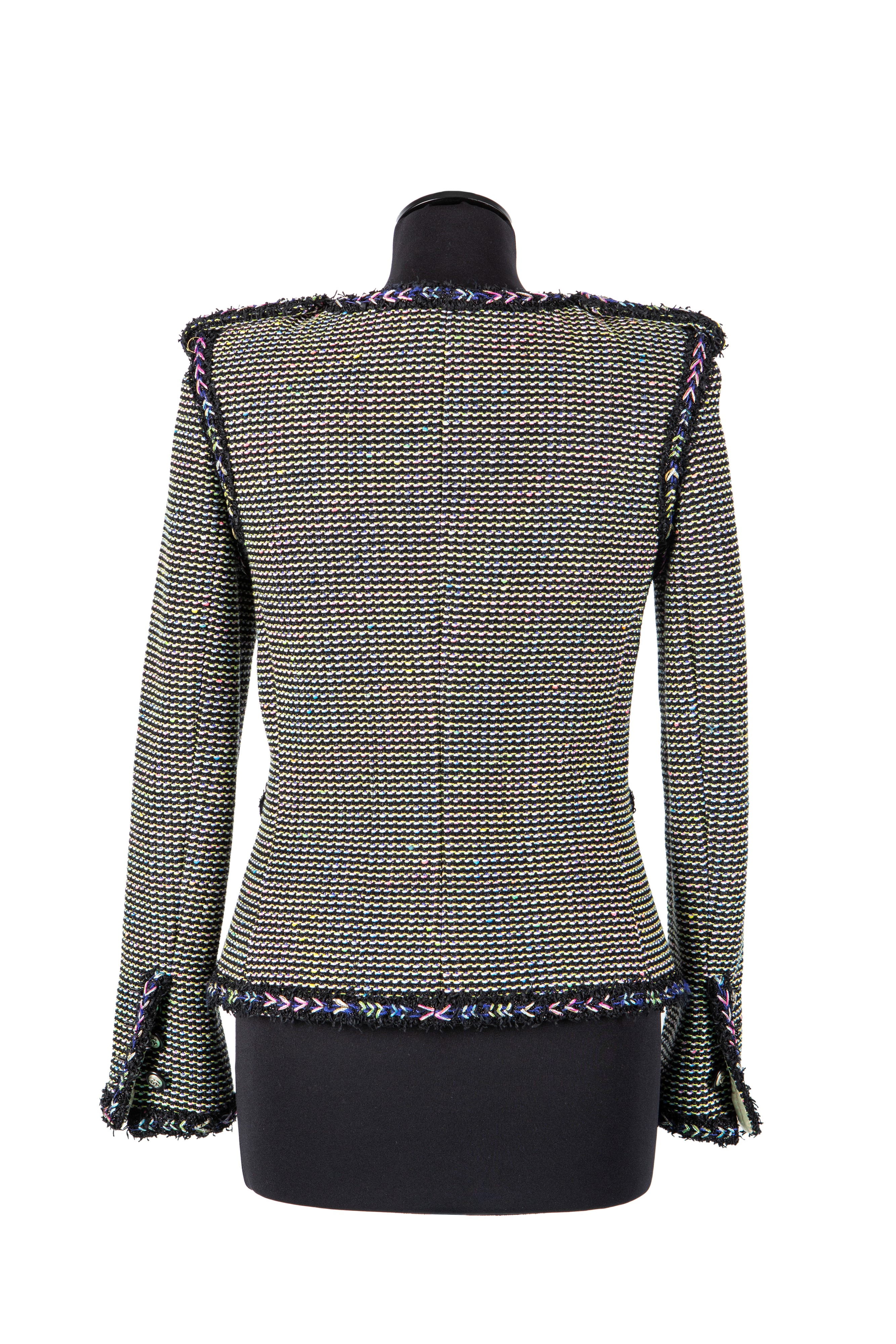 Multicolor cotton long sleeves jacket, embroidered profiles, metal buttons with logo, silk lining, french size 34, with dustbag (very slight defects)Starting bid