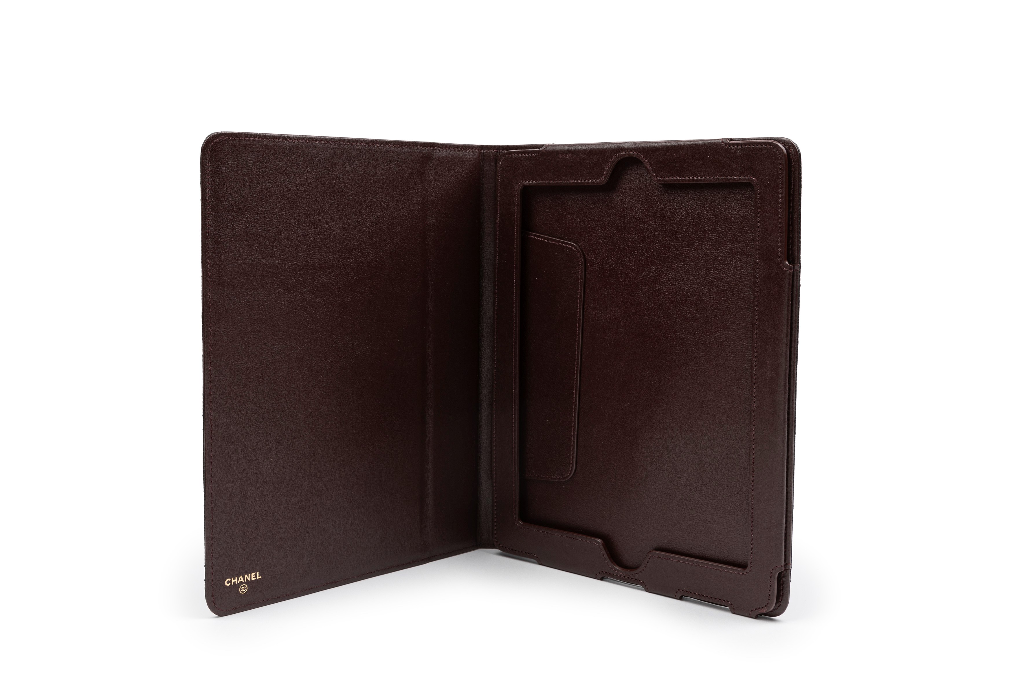 Black caviar leather iPad cover, burgundy leather lining, cm 19.5 x 25, with box (new and never used)