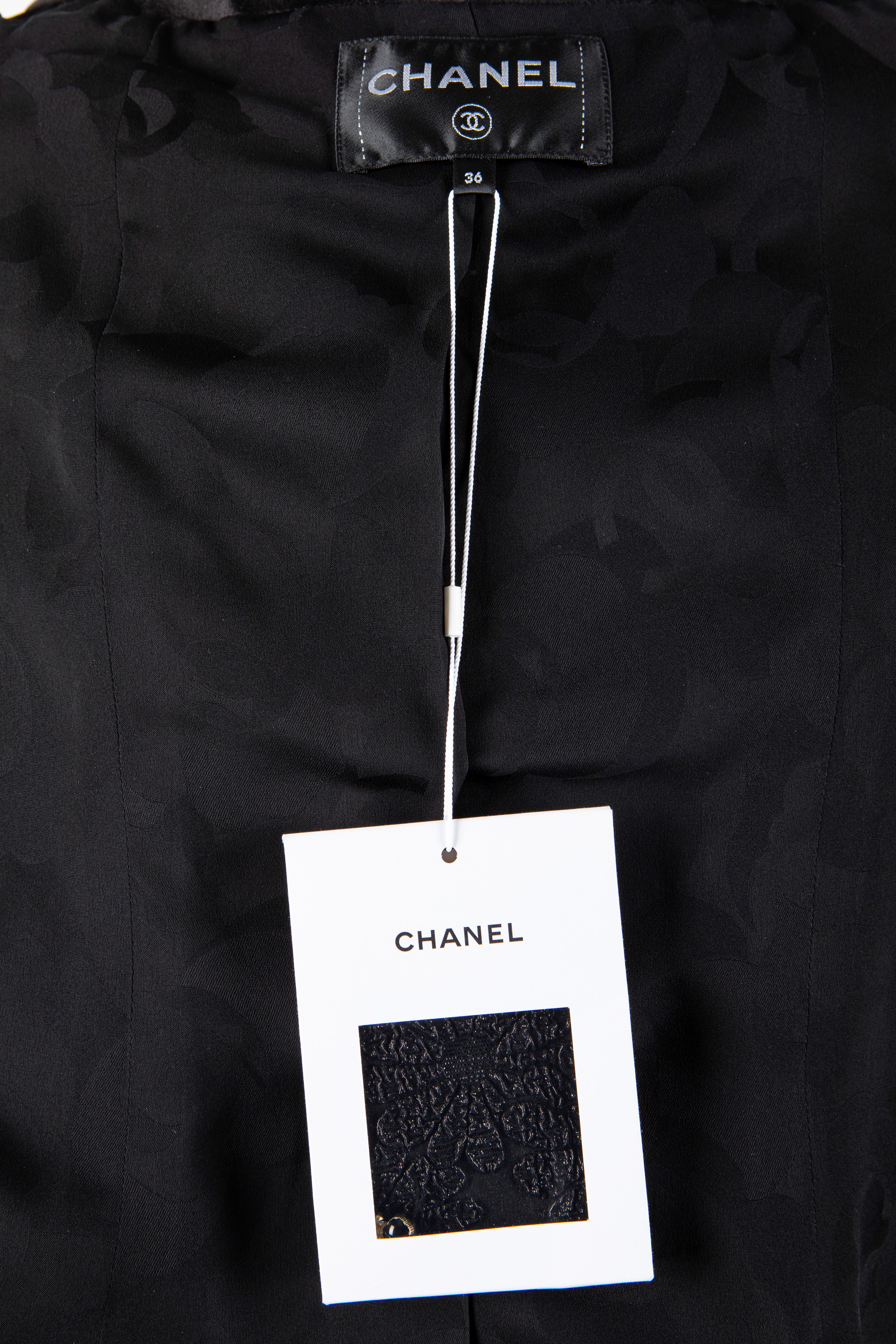 Black embroidered long sleeves strapless top, silk lining, metal gilt and rhinestones buttons, french size 36, with dustbag (new and never worn)
