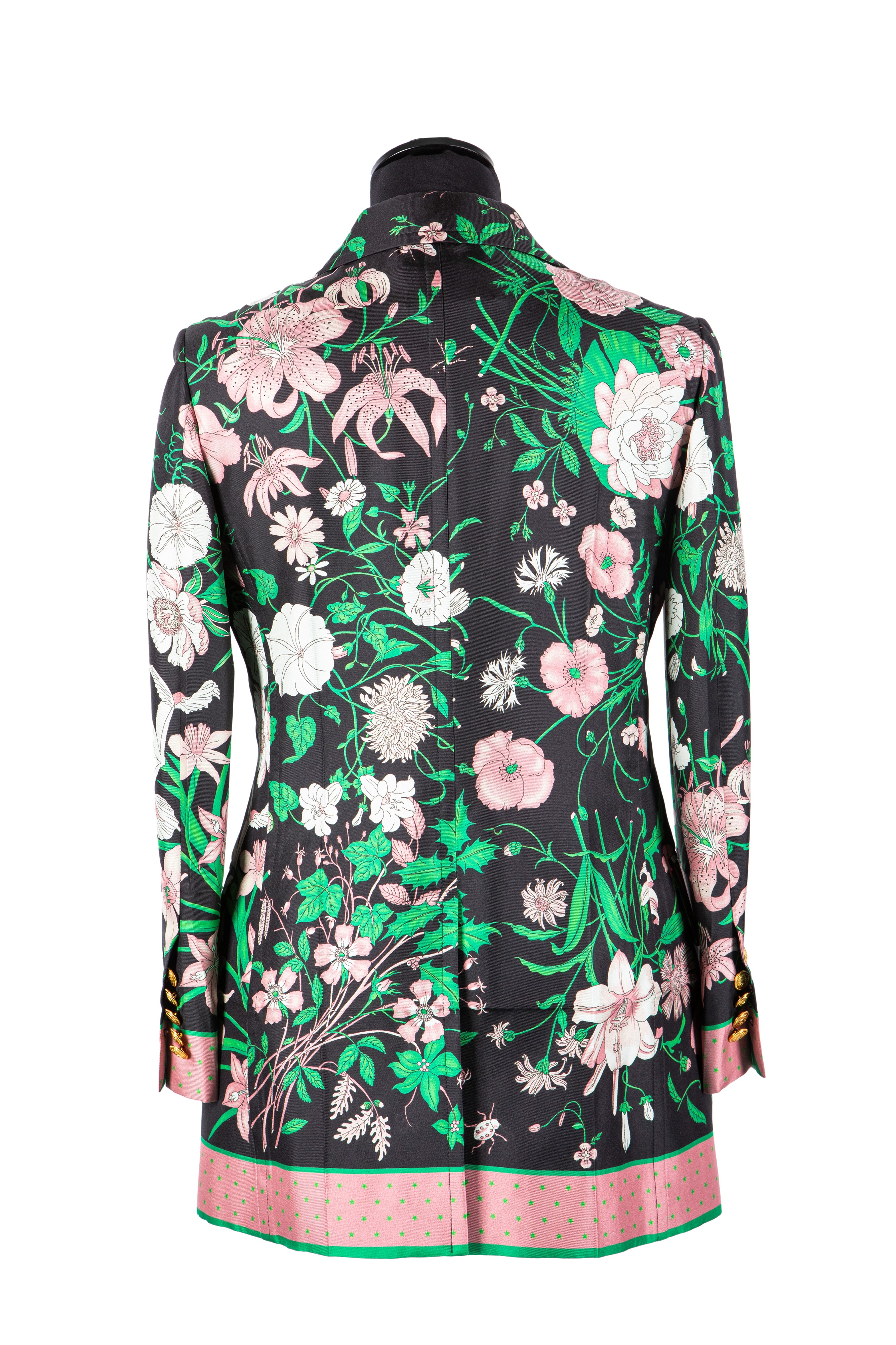 Long sleeves flora printed silk jacket, metal gilt buttons, french size 38, with dustbag