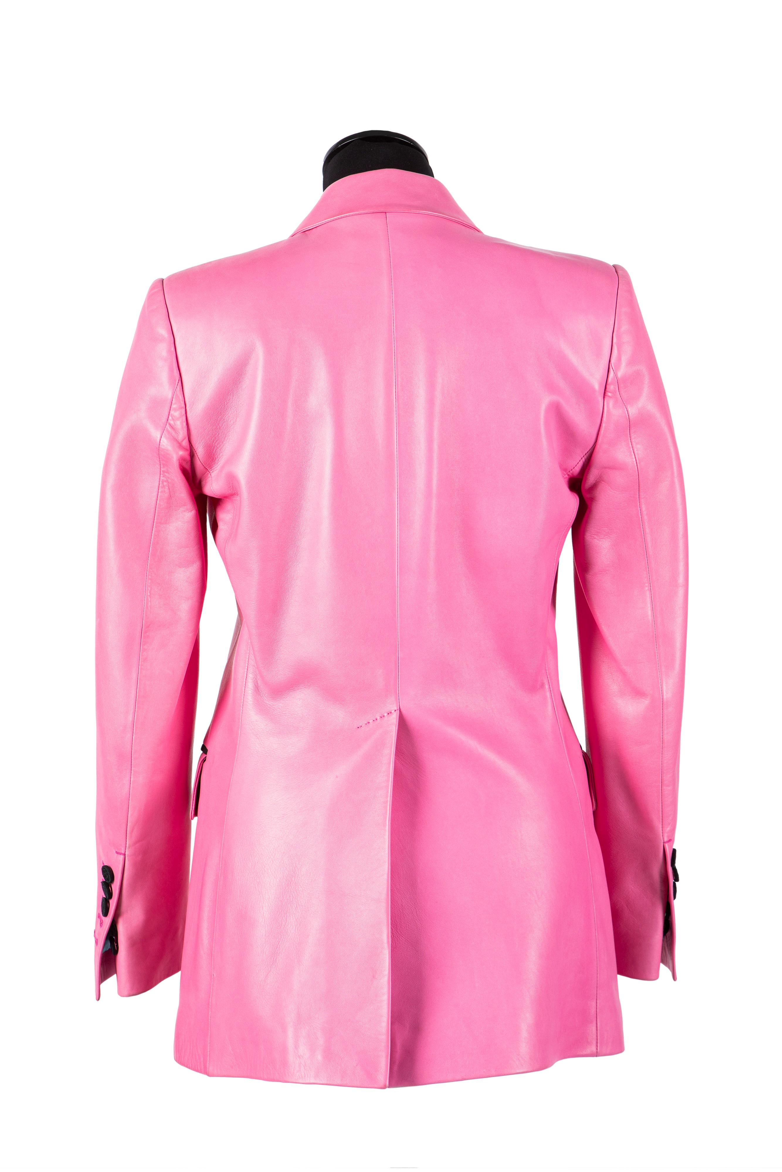 Fuchsia leather long sleeves jacket, black cotton details, french size 38 french, with dustbagStarting bid