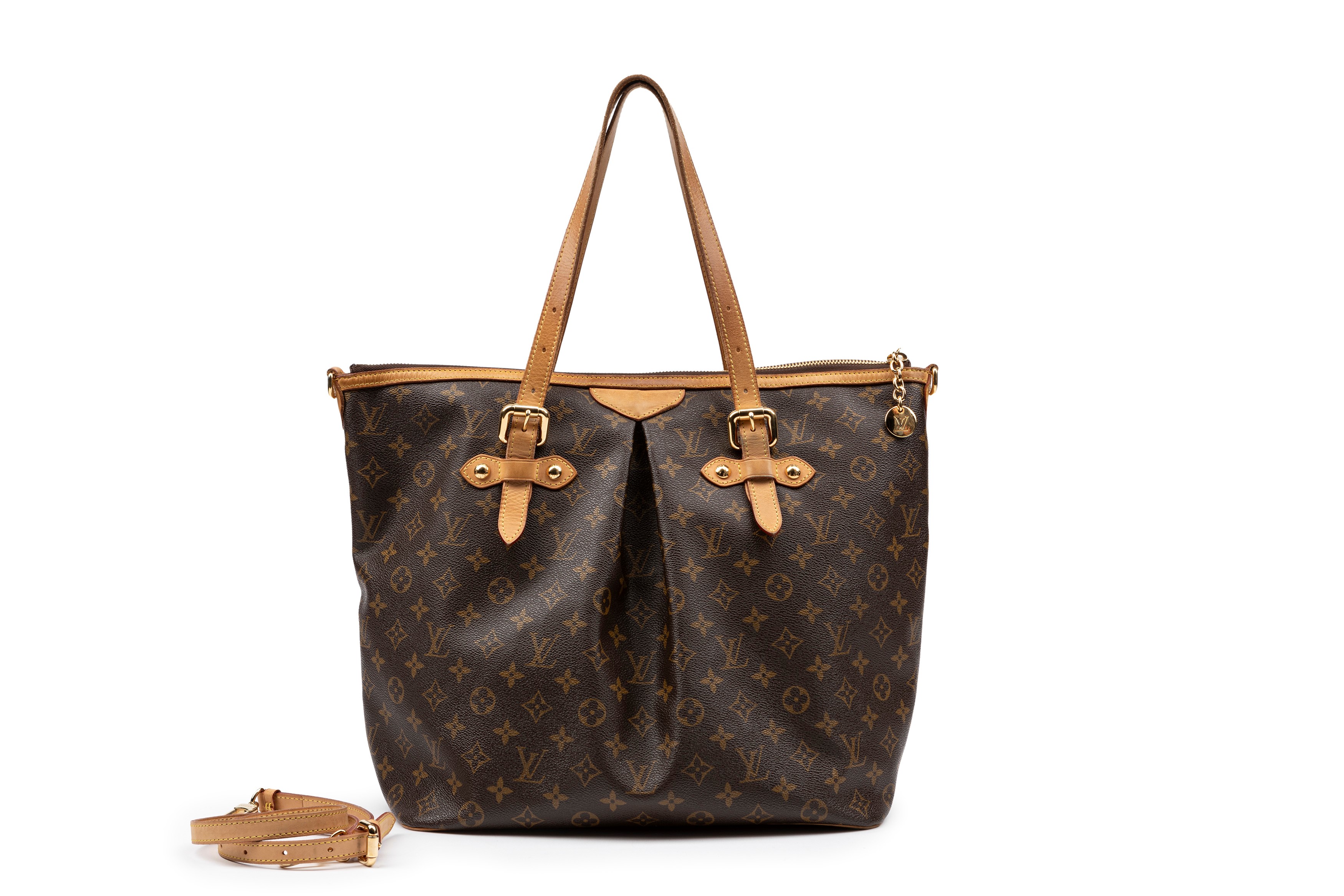 Monogram canvas Palermo bag, double handles, metal gilt details, cm 34, with dustbag (defects)