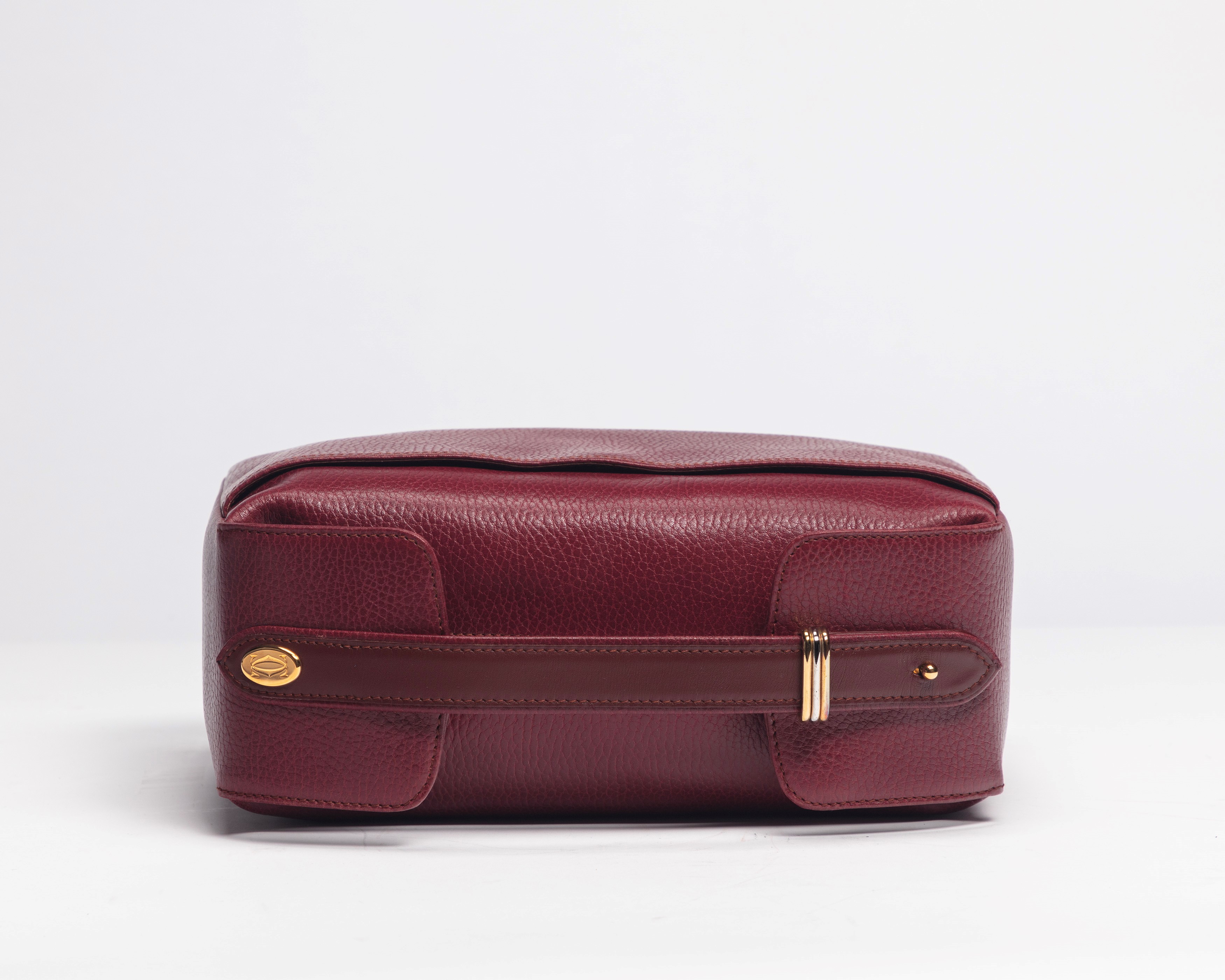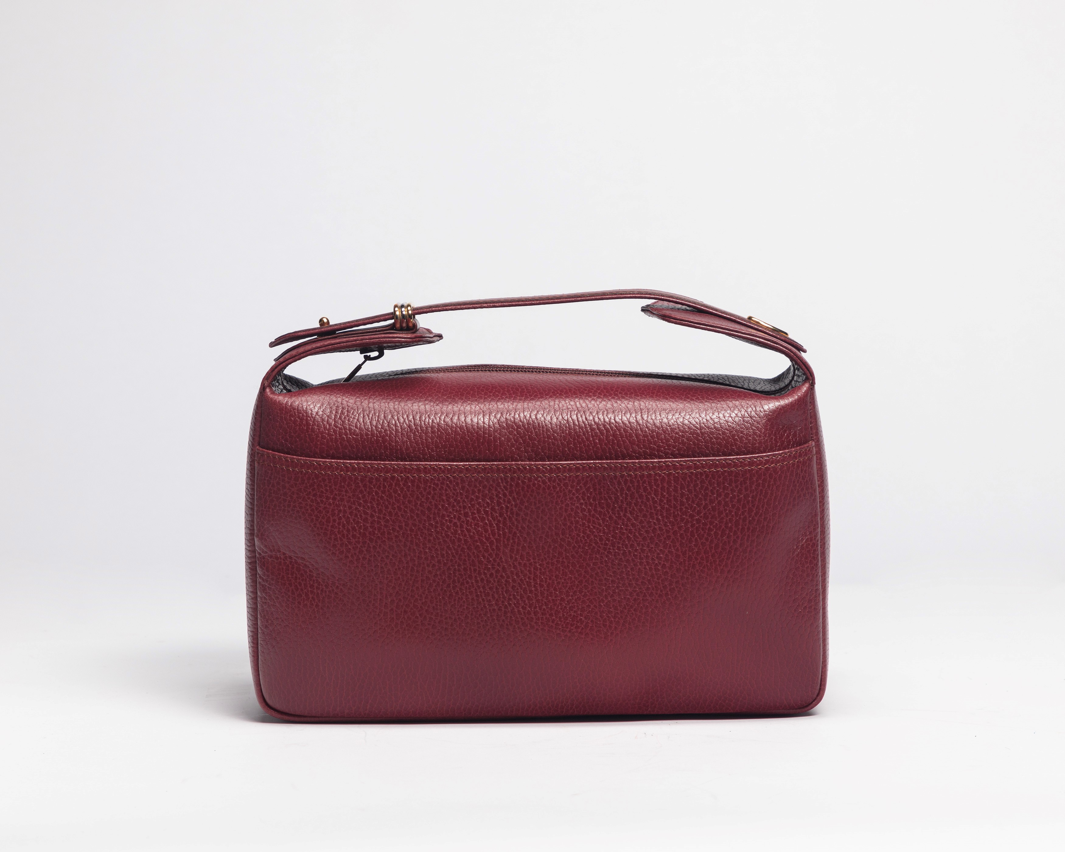 Burgundy grained leather Travel beauty, tri-coloured metal details, cm 27, with dustbag