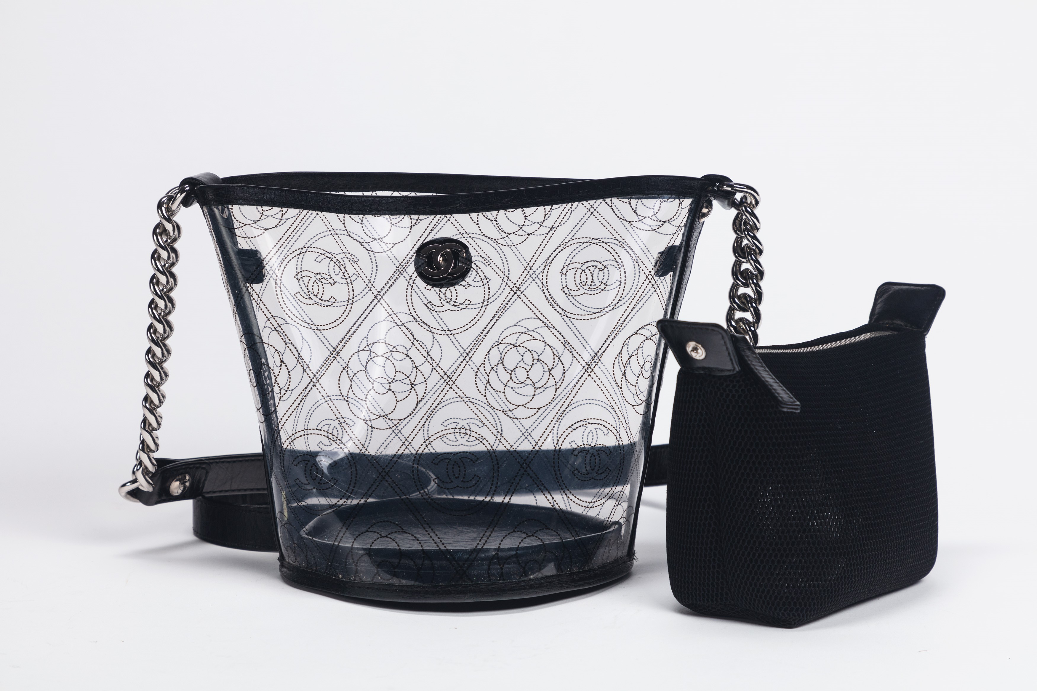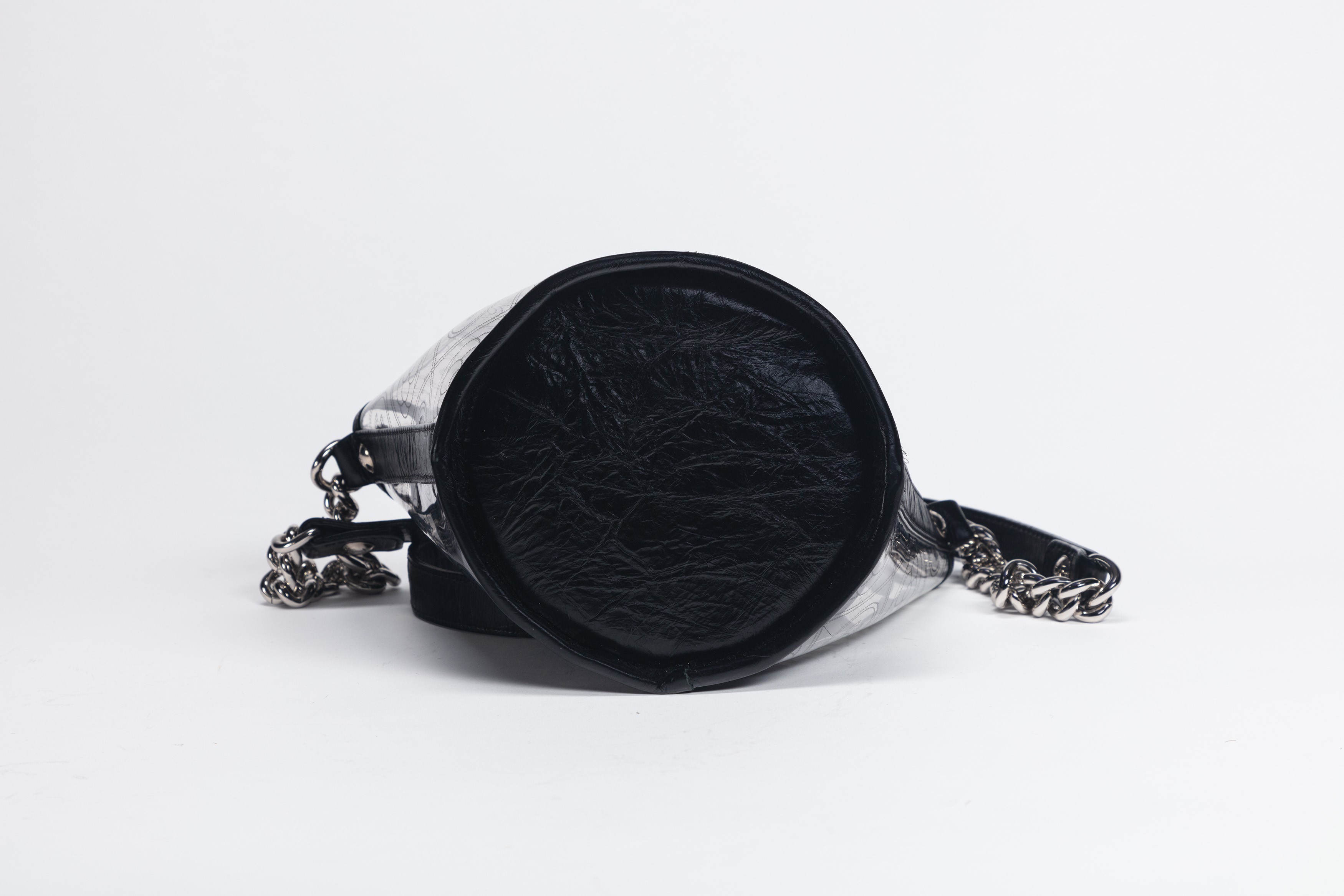 Logo-printed pvc and leather Camelia Bucket, detachable inner pouch, shoulder strap with metal chain inserts, dm cm 15 (slight defects)