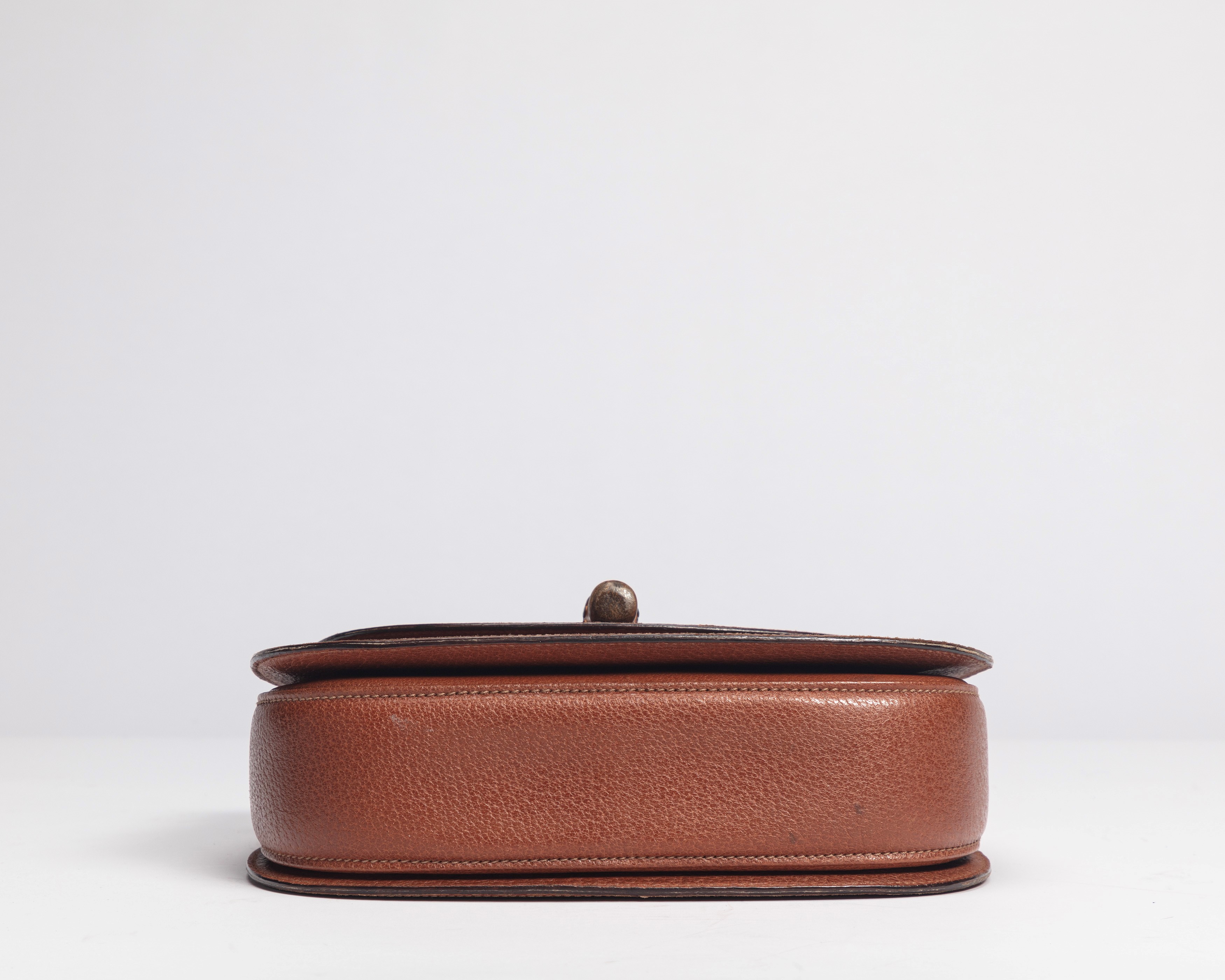 Light brown color pigskin leather bamboo bag, detachable shoulder strap, metal gilt details, cm 26, with dustbag (defects)Starting bid