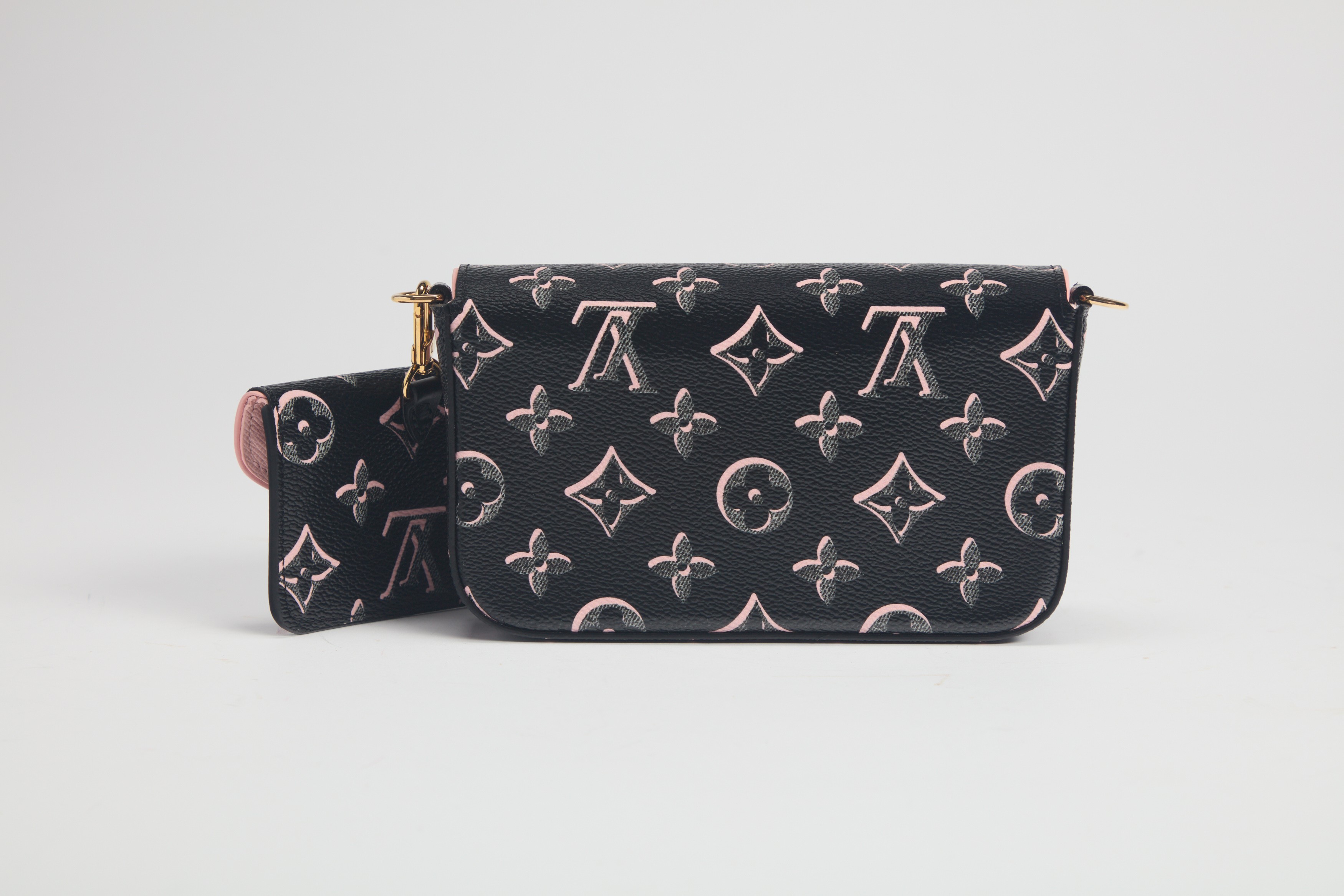 Black and pink monogram Felicie Strap & Go bag, detachable shoulder strap, cm 17, with dustbag (new and never used)