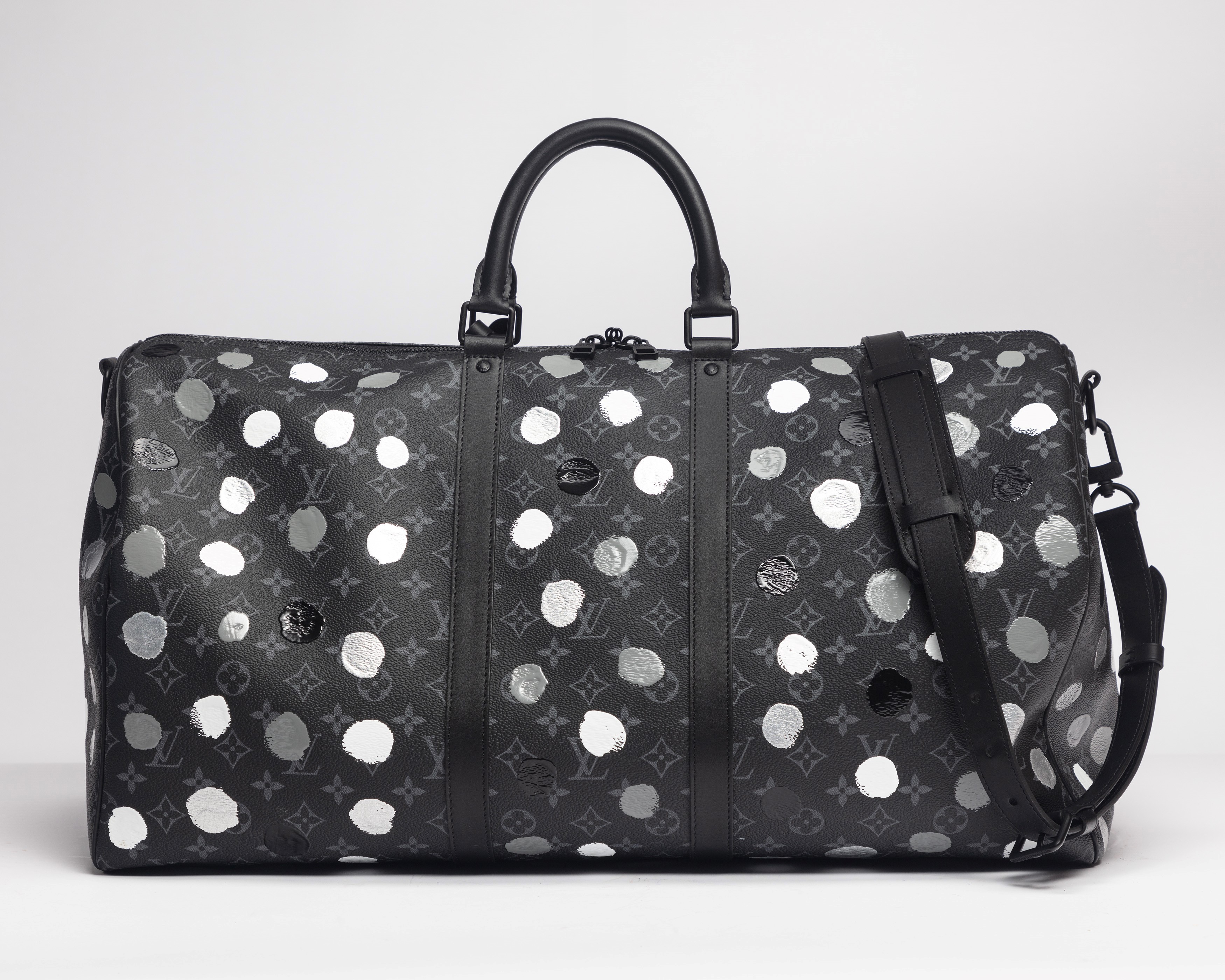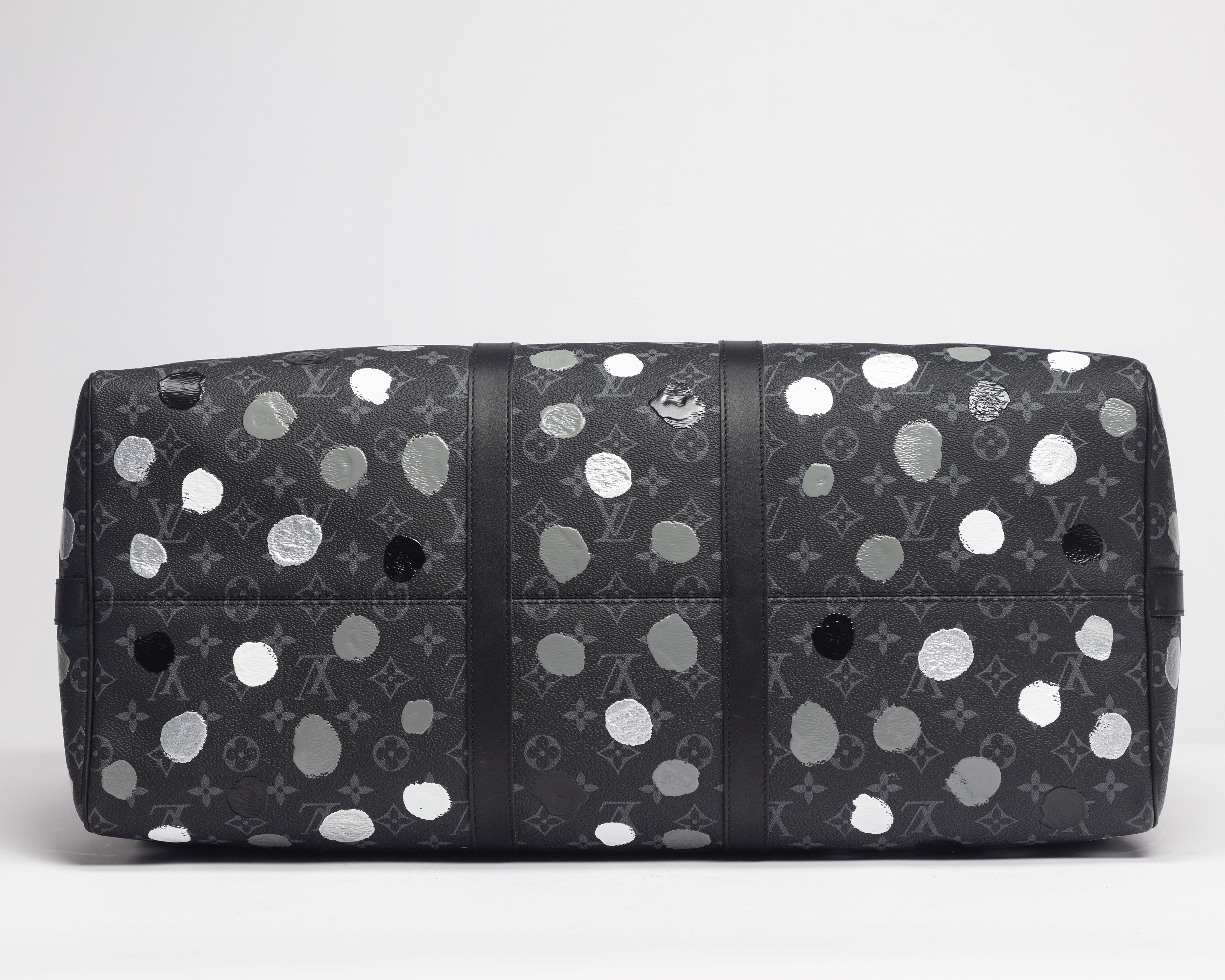Eclipse monogram leather Keepall Bandoulière 55 X Yayoi Kusama, with grey, silver, white and black dots