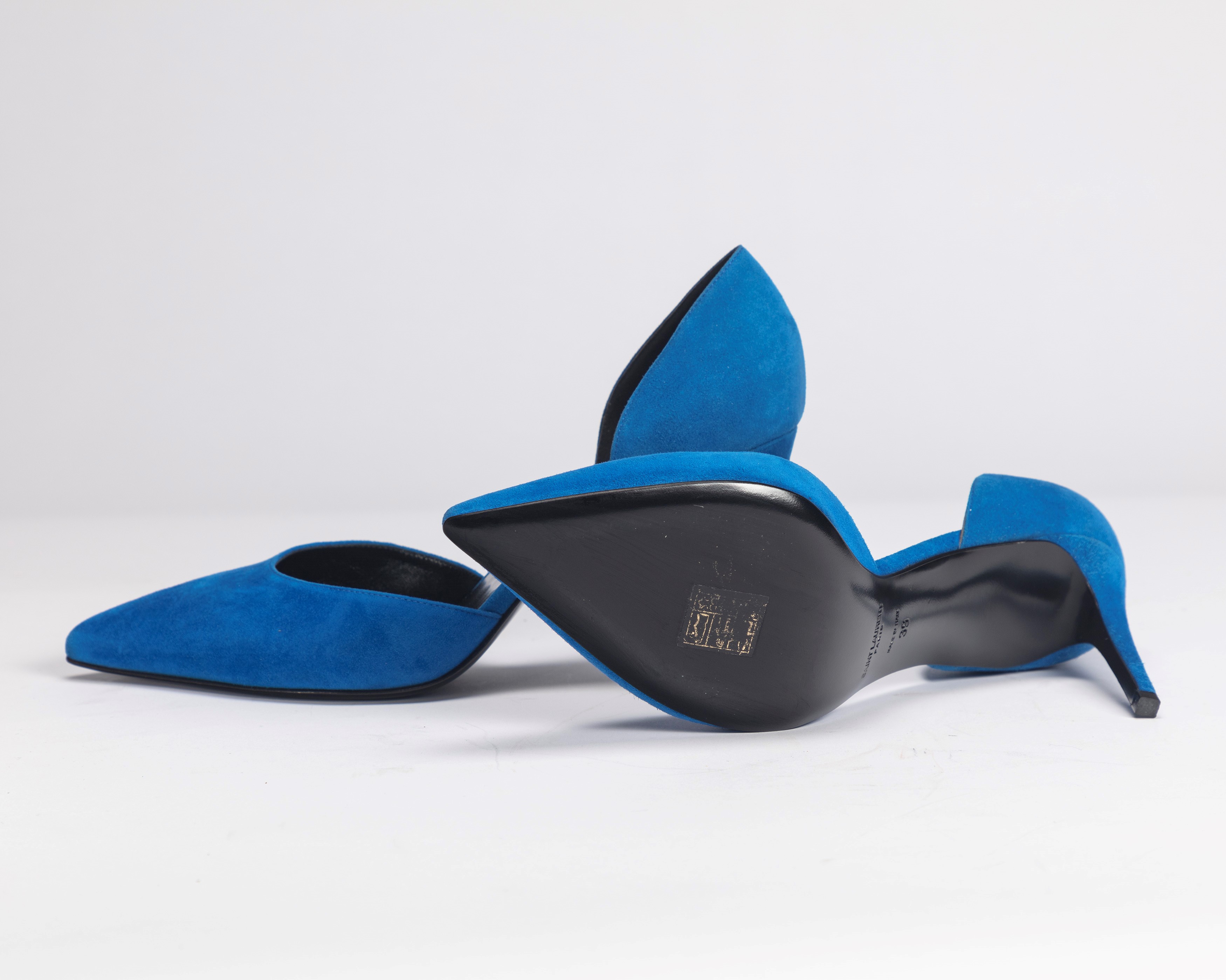 Blue suede décolleté shoes, size 39, heel 8.5, with box (new and never worn)